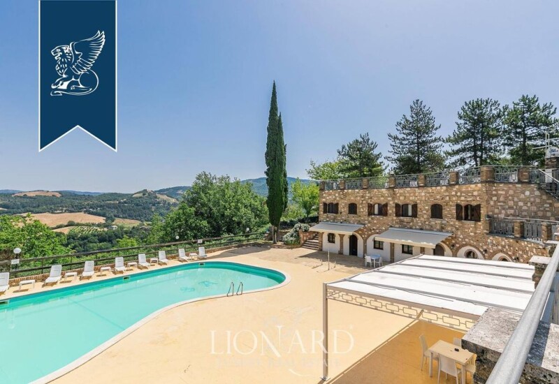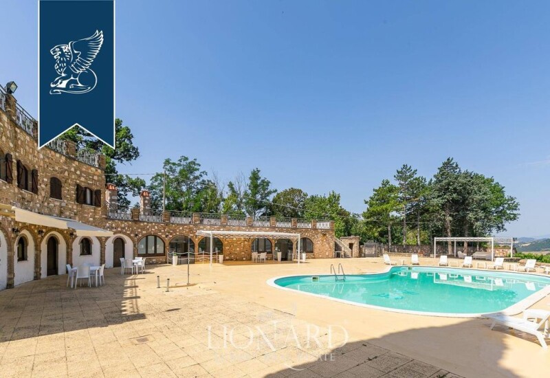 In the heart of Montefeltro, a place of great charm in the province of Pesaro e Urbino, there is this early-19th-century farmhouse with a pool for sale as an enchanting venue for events and ceremonies. This estate is just 7 km from the splendid Urbino, in an extraordinary panoramic position that overlooks an uncontaminated territory, rich in history and great cultural beauties. To make it perfect, we find some elegant and refined rooms, made even more sophisticated by the choice of exclusive furnishings, which open onto the large, perfectly-manicured laws of the 2,000-sqm garden, with a big swimming pool and a spacious panoramic terrace. Its 2,500 sqm welcome twenty bedrooms intended for reception and big, perfectly equipped spaces such as two splendid lounges and a restaurant, a kiosk and a pizzeria. All the spaces, designed with attention to the smallest details and equipped with all comforts, have a perfect mix of old and new, as they feature refined furnishings and elegant upholstery. Ref: 7802.