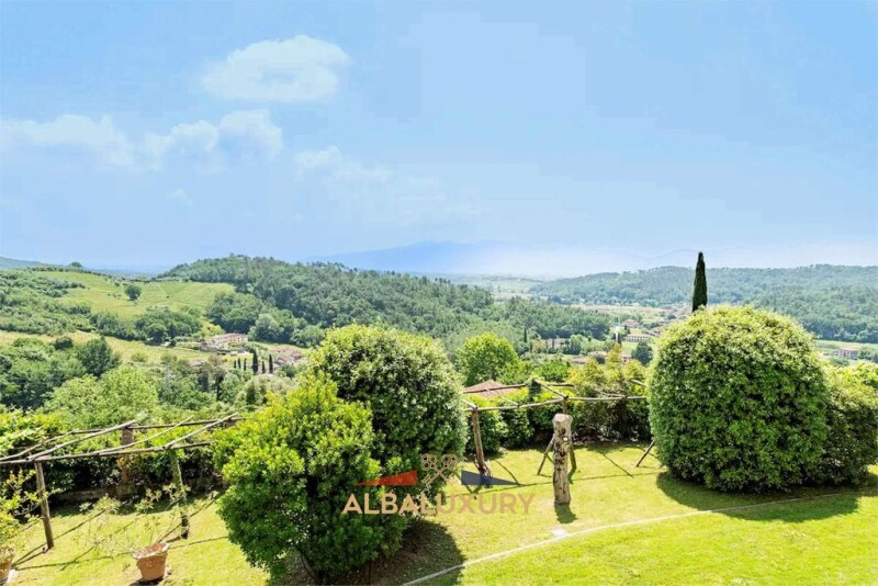 Situated in the picturesque hills of Lucca, a few kilometres from the historic heart of the city, this historic villa with swimming pool represents a rare investment opportunity. The property covers approximately 1400 sqm and includes the main villa of approximately 1200 sqm and two separate flats. Restored with great attention to detail, the villa retains the charm of the past with all modern comforts. The entrance to the villa, accessible through a private gate, features a double staircase leading to the main floor. Here there is a large living room with an antique fireplace, an elegant dining room, a second reception room, a study and a service room. On the first floor is another spacious hall with a prestigious fireplace, a well-equipped kitchen, a laundry room, three double bedrooms and two bathrooms. The main living room leads to a frescoed loggia with great heights and elegant arches, perfect for al fresco dining. The sleeping area on the second floor comprises seven bright bedrooms, each with en-suite bathroom. The oldest part of the villa houses a further living area with panoramic views, currently used as a study. Not far from the main villa, the former church has been converted into a 90 sqm flat consisting of a living room, a kitchen, a bedroom and a bathroom. On the opposite side of the park is another 120 sqm annexe with a large living room and open kitchen, two double bedrooms and a bathroom with tub. The property is immersed in a private plot of 10,000 sqm planted with olive trees, with approximately 110 plants, fruit trees and flower gardens. The swimming pool, located close to the villa, offers an oasis of relaxation and privacy. This historic villa is ideal for those seeking an exclusive residence in a serene natural setting, while maintaining proximity to the city of Lucca. Perfect for large families, special events or as an investment in a high-end property.