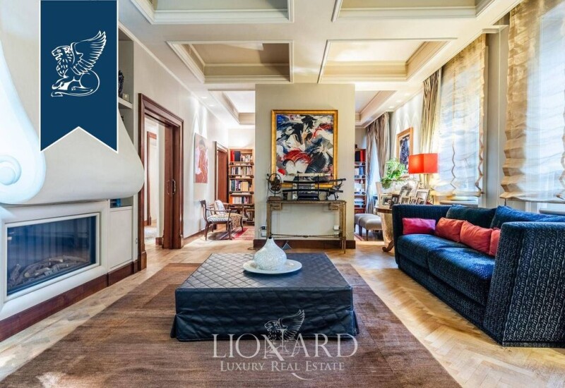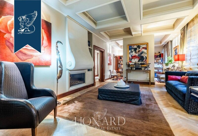 This exquisite 230-sqm apartment in the heart of Rome offers luxury and tranquility just steps from the city's bustling central streets. Situated on the third floor of an elegant building, the apartment has been meticulously renovated with premium materials, combining classic architecture with modern comfort. Its design features soft geometries, decorative stuccoes, wooden floors, and marble finishes, creating a harmonious and sophisticated atmosphere. The bright interior includes a double living room with a fireplace, a library and entertainment area, and a dining room flooded with natural light through large windows. The fully equipped kitchen also overlooks lush greenery. The sleeping area comprises three bedrooms and three bathrooms, designed to balance elegance and practicality. Two corner balconies, each 5 sqm, provide serene outdoor spaces with views of the verdant surroundings. The property includes a private garage and a cellar, ensuring convenience and storage. Its prime location offers proximity to iconic landmarks like the Colosseum and Trevi Fountain, while its tranquil setting and excellent transport links make it a rare urban retreat. This apartment is a perfect blend of history, culture, and modern luxury in the heart of Rome. Ref: 13416.