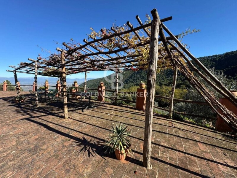 Charming stone farmhouse with large panoramic terrace, immersed in the greenery of the Tuscan countryside with large swimming pool. This charming property has been carefully renovated, preserving the authentic features of traditional Tuscan country houses and using local and recycled materials to enhance its charm and prestige. The property, distributed on two levels, offers welcoming and functional spaces. On the ground floor, a large entrance leads to the rustic-style eat-in kitchen, enriched by a carved stone sink and a charming fireplace. The spacious dining room, with access to the panoramic terrace, is ideal for convivial moments, while the living room with fireplace guarantees a warm and welcoming atmosphere. A storage room and a guest bathroom complete the floor. On the first floor, the sleeping area consists of two double bedrooms and two twin bedrooms, perfect for hosting family and friends. There are two elegant bathrooms: one with a Jacuzzi shower and one with a bathtub. Outside we find a wood-fired oven and a convenient laundry room. The large panoramic terrace offers a breathtaking view of the surrounding hills, while the garden, with swimming pool and summer veranda, represents an oasis of relaxation. The land of approximately 33,000 square meters includes vineyards, olive groves and a wooded area, offering the opportunity to live immersed in nature and enjoy the fruits of the earth. Completing the property is a barn that offers interesting possibilities for expansion or development. This property combines elegance, comfort and authenticity, making it perfect for those looking for an exclusive residence in Tuscany or a prestigious investment in one of the most beloved regions of Italy. Only 15 km from Lucca, 30 km from Pisa, and 70 km from Florence. The sea is about 45 minutes away by car. **Please note**: The property is located in a privileged position on top of a hill, which guarantees maximum privacy and spectacular views. It is important to underline that the last stretch of road to reach the property, of about 2 km, is unpaved and bumpy. We therefore recommend the use of 4x4 vehicles for easy and safe access. *For privacy reasons the address on the card is indicative and the property is in any case located in the immediate vicinity*.