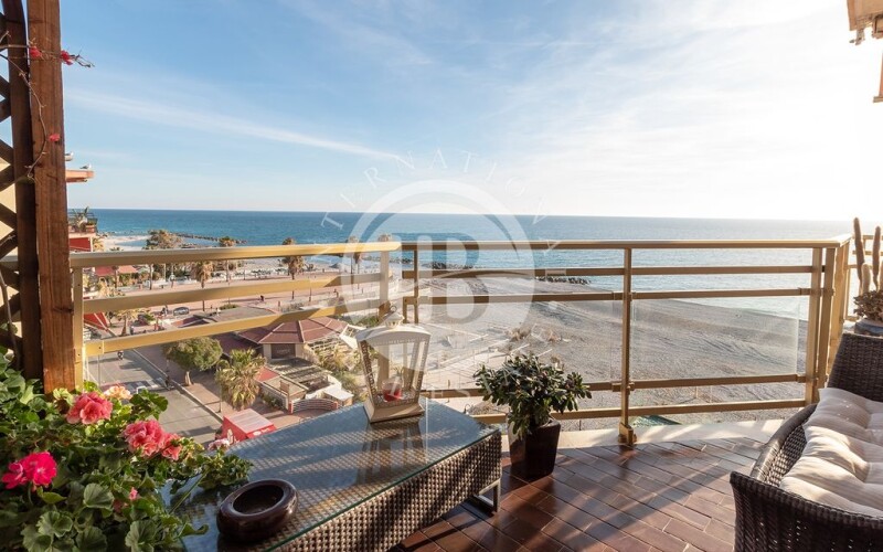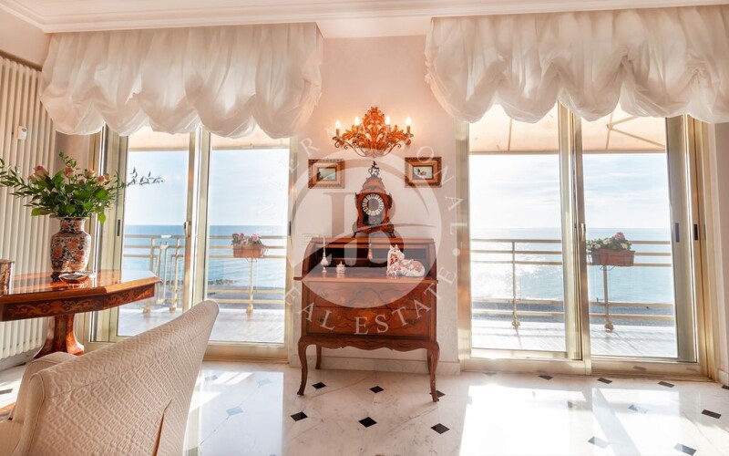 On the first coastline, overlooking the sea, there is an exclusive penthouse of about 210 square meters with a large terrace, offering a panoramic view of the sea, the French Riviera, and the Principality of Monaco. The property, located on the sixth floor of a building with an elevator, consists of: a bright entrance, a spacious living room with splendid panoramic windows projecting onto the sea, a cozy lounge with a fireplace and access to the terrace, a fully equipped kitchen with access to the terrace, the dining room with a sea view, two large bedrooms, three bathrooms, a storage room, and a laundry room with access to the balcony. The penthouse has undergone a complete renovation with high-quality materials. It features air conditioning, centralized heating with a thermostat, marble and parquet floors. Completing the property are a 22-square-meter garage and a double cellar. The privileged location allows easy access to the sea with just a few steps. Ventimiglia is a locality situated on the coast of Liguria, just a few kilometers from the border with France. Renowned for its coastal beauty, Ventimiglia offers a captivating mix of history, culture, and breathtaking landscapes. The historic center, with its winding alleyways and colorful medieval buildings, is a place rich in atmosphere and charm. The city is dominated by an ancient castle that provides spectacular views of the town and the Ligurian Sea. Ventimiglia's coastline is characterized by picturesque beaches, hidden coves, and crystal-clear waters, making it a beloved destination for sea lovers. The presence of vibrant and authentic local markets adds a touch of liveliness to the city's cultural fabric, with fresh and colorful products reflecting Mediterranean cuisine. Ventimiglia is also known for its botanical gardens, offering a wide variety of plants and flowers. With its mild climate and strategic location along the French Riviera, Ventimiglia attracts residents and visitors alike in search of a serene life and a charming environment. 0.5 km from the sea 2 km from the port of Ventimiglia 17 km from Sanremo 74 km from Alassio 52 km from Imperia 50 km from Nice Airport.