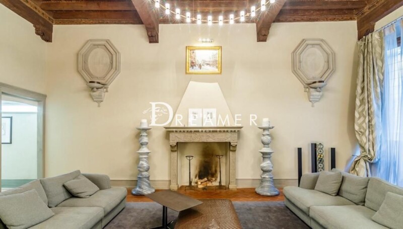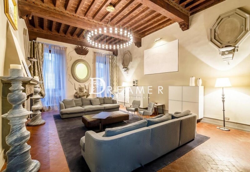 Prestigious 490 sqm luxury apartment for sale in the center of Florence, located on the main floor of a typical Florentine building. The property has two entrances, one via the lift that arrives directly inside the apartment and from the classic entrance from the front door. Once inside, we find a very large hallway overlooking the internal courtyard from which you can access the living room with a fireplace, large and sumptuous, pleasantly lit by two large windows. From the hallway, you also have access to a guest bathroom. From the entrance, a long corridor leads to the splendid frescoed dining room and to the kitchen, well finished with quality materials. The corridor ends at the master bedroom, also well lit, equipped with a walk-in closet and a large bathroom with a bathtub. Finally, we find, near the master bedroom, two further bedrooms. The precious finishes, the comforts and the location make this prestigious apartment a real pearl in the Florentine real estate panorama. The property includes a garage with two parking spaces. REF. 2364.