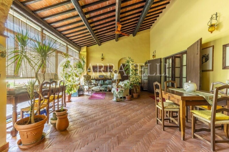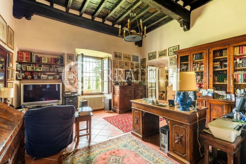 Period villa with large grounds in the Florentine hills. Description Magnificent independent villa located on the top of one of the hills surrounding the city of Florence, divided into two independent and internally connected apartments. The ground floor apartment of 310 sqm, consists of a very large living area, the heart of which is the living room embellished by the period fireplace, next to the study and an entrance room that can be used as an additional sitting room. The kitchen is very large with an adjacent pantry. The sleeping area, well separated by a hallway, has three very large bedrooms and three bathrooms. In front of the house is a large veranda that has been enclosed by a panoramic glass window and allows the space to be enjoyed even during rainy days, a space that was once the heart of the house, with the old wood-burning oven. The 322-square-meter first-floor apartment has its entrance from the veranda via a stone staircase where there are some delightful nooks and crannies before arriving at a sitting room that disengages the various spaces, a large living room with a fireplace, the dining room, a service bathroom and the kitchen. A hallway disengages the three double bedrooms and two bathrooms. Underneath the house, with access from the outside, develops the cellar, divided into several rooms, with one part still in stone carved into the rock; adjacent is the boiler room. Outdoor spaces The land of about 9,000 square meters is spread on three sides of the villa, there are 80 olive trees, some fruit trees and a particular cypress tree that protects the front of the villa. The garden in the part closest to the villa is a palette of colors that come to life in spring and brighten the property. The large courtyard is paved with old stones. In a position slightly away from the villa is the old pigsty with countless potential. Condition and finishes The villa has undergone several renovations, 70s, 80s, with the recovery of some spaces to make the house more usable, and the use of materials of the time, in 2010 the roof and facades were also redone. Maintenance is constant, aimed at keeping the house in its best condition. Some spaces, such as the bathrooms and the two kitchens, need to be modernized to make them more responsive to new technologies and more modern building standards. Externally, the villa is in excellent condition, as is the roof, which was recently fixed. Potential uses A housing solution suitable for a large family, two households that wish to each maintain privacy by taking advantage of the division into two apartments. A suitable solution for an investment property for the creation of an elegant resort. Location The hills surrounding Florence are a treasure chest of beauty and charm, allowing you to experience the city while staying away from the traffic and chaos of the city in a bucolic atmosphere, with nearby services.