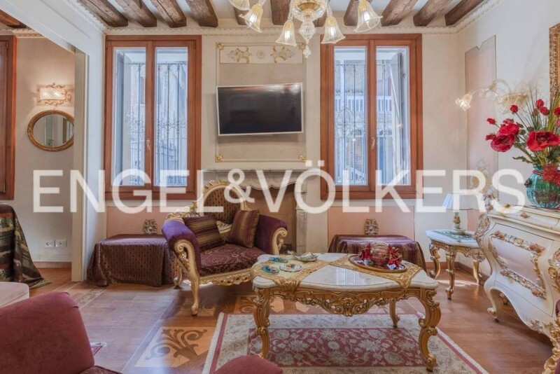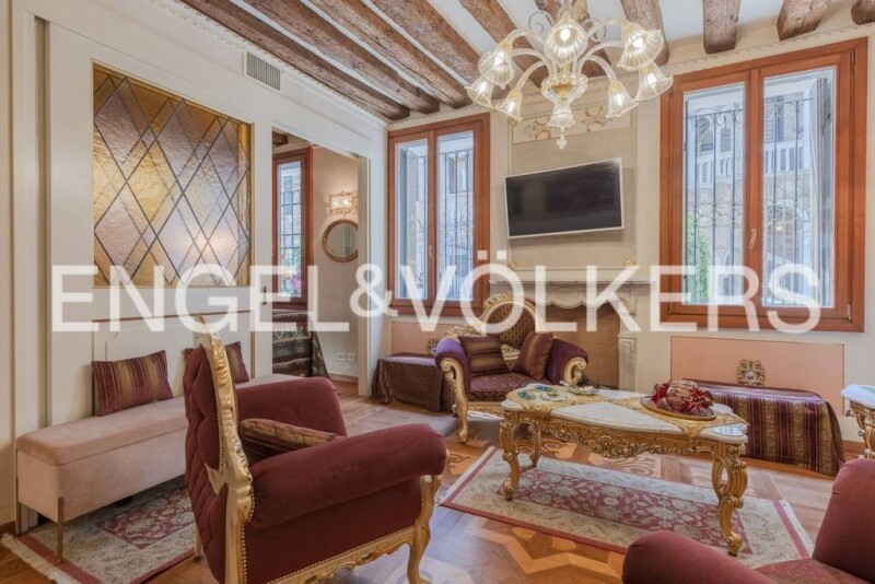 Designed by architect Giovanni Candi, the Contarini del Bovolo staircase hides stories and legends that make us dream. From its top, 26 meters high, you can enjoy a wonderful view of the city and the firmament. In fact, in 1859, the astronomer Ernst Wilhelm Tempel, conducting observations with his telescope from the Belvedere of the stair-tower, discovered comet C/1859 and the Merope nebula. According to legend, however, Pietro Contarini had the staircase built so that he could go up to his bedroom, located on the top floor of the building, on horseback. Today we become privileged observers of this jewel hidden in the San Marco district, a few meters from La Scala. Immediately struck by the fine finishes, we enter the welcoming living room, we can enjoy a romantic and very rare view directly onto the Scala, sitting on the sofa reading a book. The property is embellished with high hand-made gold leaf reliefs, a magnificent 18th century fireplace and luxurious mosaic floors of ancient wood. We then find the modern kitchen, with access to a lovely and intimate common outdoor space, where we imagine ourselves relaxed and enjoying a quiet breakfast immersed in a typical Venetian atmosphere of gondoliers and traditional boats. The suggestive double bedroom, where you can relax while admiring the play of lights of the Scala at sunset, and the bathroom partially covered in Carrara marble complete this unobtainable wedding favor with a classic heart, but with all the comforts to make it perfect also as an investment, being also sold completely furnished with custom-made furniture of local craftsmanship and equipped with septic tanks and usability. Highly performing windows, air conditioning, alarm system and armored door give added value to this beautiful property. San Marco is the heart of the city of Venice, the best known and most prestigious district, from every point you are within a few steps from both Piazza San Marco and the Teatro della Fenice. This area is also very well served by all the Vaporetto lines, and by the gondola ferry, it is also possible to reach any corner of Venice in less than ten minutes. The apartment is located in the heart of Venice, close to Piazza San Marco and a 5 minute walk from the Rialto Bridge. You can enjoy all the services of the city center: proximity to public transport, shops of all kinds, museums (Palazzo Ducale, Basilica of San Marco, Museo Correr, Arsenale, Biennale, just to name the closest ones).--032c5de4dbe719da0f76e292ad83ec56!.