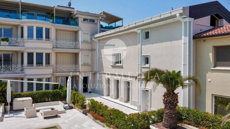 Desenzano del Garda, in a prestigious residential complex on the lake, consisting of a few residential units, we offer for sale a local penta of approximately 400 m2 on three floors plus a basement, all connected with a stairwell and internal lift. The apartment is currently rustic and therefore can be customized according to the buyer's tastes and needs. The layout includes on the ground floor, the entrance hall, a bright living room with large windows and access to the EXCLUSIVE TERRACE of approximately 100 m2 with direct connection to the communal POOL, a kitchen, a dining room and a bathroom, on the first floor a double bedroom with dedicated bathroom and walk-in closet and a second bedroom with walk-in closet, on the second floor, a very panoramic attic room with bathroom, which can be used as a study or bedroom. The property includes a basement room that can be used as a relaxation area or tavern as well as a laundry room and double garage. The truly enviable lakeside position, the exclusive context, the large terrace, the swimming pool and the direct connection to the beach make this apartment a unique product of its kind and able to satisfy all the expectations of the lucky buyer.--893486c2bfda2ea6d5a77f6d090643b4!.