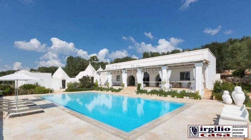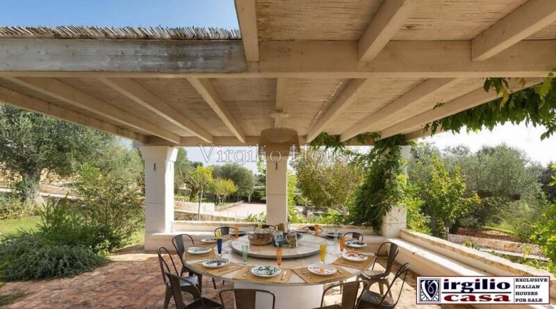 REF: Tenuta Murredda: Virgilio House offers for sale in Ostuni: Tenuta Murredda, an old stone farmhouse with a wonderful complex of trulli and swimming pool, 10 km from the historic center of Ostuni. The architecture of the property and the panoramic views that can be enjoyed from it are of rare beauty, rich in the typical colors of Puglia: the blue of the sky, the intense red of the earth, the dark green of the olive trees, the dazzling white of lime. The property has a covered area of ??252 square meters and is surrounded by 4 hectares of land planted with olive groves and orchards. In a hilly position, it has a panoramic view of the surrounding countryside, a typical example of the Apulian landscape. A large lamia, with star and barrel vaults and paving in polished local stone, houses the large and panoramic living area, with large windows overlooking the garden and the swimming pool; a comfortable kitchen, a service area with pantry and a bathroom, two large and bright bedrooms with en suite bathrooms. Outside the lamia a large and shaded porch overlooks the large swimming pool of about 100 square meters. Not far from the main building there are three trulli and a lamia which each host a double bedroom with bathroom and independent entrance. The property is in excellent condition, has been the subject of a careful renovation, with quality materials and finishes. The rooms are large and bright, with local stone floors, internal doors, vaulted ceilings. In the garden an equipped area houses an outdoor kitchen with barbecue and a pergola with a beautiful stone table that can accommodate up to 12 people. The infinity pool is located in a panoramic position and measures 108 square meters (18 m x 6 m), An outbuilding, with independent access, can be used as a caretaker's house or guest house. Another pergola houses a convenient parking. The private land, which surrounds the property, is entirely fenced, partly cultivated as a garden with lawn and various species of plants typical of the Mediterranean scrub; one area is planted with a vegetable garden, with vegetables and aromatic herbs, for the needs of the property; the cultivation is completed by a characteristic terraced olive grove. This property is the ideal choice for those looking for: - the quiet of the Apulian countryside; - an ancient and charming property; - a property to be rented with summer leases.