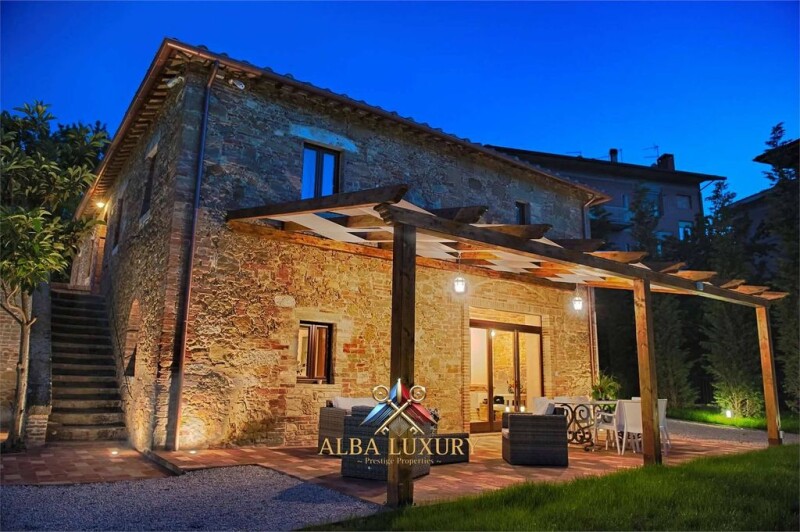 Immersed in the picturesque location of Chianciano Terme, Tuscany, stands this magnificent Tuscan residence, an elegant dwelling that has undergone a meticulous renovation process, characterised by high-quality finishes. The entire property, extending over approximately 400 square metres and surrounded by a plot of 3,000 square metres, presents itself as an oasis of tranquillity and privacy. The property, which has undergone a complete renovation with attention to detail, stands out for its impeccable status, offering a luxurious and cosy ambience. This versatile property is perfectly suited both as a refined private residence and as a place of accommodation, currently enjoying a high yield. The main residence, spread over two levels, opens on the ground floor with a large open space that houses an elegant living room with fireplace, a fully equipped kitchen, a dining room, a laundry room and a bathroom.On this level, there is also a SPA complete with sauna, Turkish bath, hydromassage and chromotherapy shower, to ensure maximum relaxation and well-being. The upper floor is dedicated to 5 bedrooms, each with its own private bathroom, offering refined and cosy living solutions. Possibility of adding a further 3 bedrooms. Amenities include an efficient natural gas heating system, electricity supply, internet connection and municipal water supply, ensuring a high quality of life. In addition, the property boasts an approved project for the construction of a swimming pool, adding a touch of luxury to the context. Just 4.4 km from the Terme di Montepulciano and 24 km from Bagno Vignoni, it offers a privileged location to enjoy the beauty of Tuscany. The Perugia-San Francesco d'Assisi Airport, the closest, is easily reached at 83 km from the property, guaranteeing convenience and accessibility. This unique property, with its mix of refinement, comfort and privileged location, represents an extraordinary opportunity for those seeking the authentic Tuscan lifestyle. Facilities include an efficient methane heating system, electricity supply, internet connection and communal water supply, ensuring a high quality of life. In addition, the property boasts an approved project for the construction of a swimming pool, adding a touch of luxury to the context. Just 4.4 km from the Terme di Montepulciano and 24 km from Bagno Vignoni, it offers a privileged location to enjoy the beauty of Tuscany. The Perugia-San Francesco d'Assisi Airport, the closest, is easily reached at 83 km from the property, guaranteeing convenience and accessibility. This unique property, with its mix of refinement, comfort and privileged location, represents an extraordinary opportunity for those seeking the authentic Tuscan lifestyle.