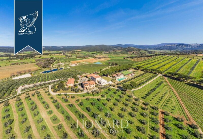 This charming complex for sale is just a few km from Grosseto, surrounded by Tuscany's leafy countryside and its typical olive trees. Thirty hectares of grounds delimit are part this marvellous property, which offers expanses of olive trees, vineyards and a private park embellished by a tennis court, a golf course and a paddock for walking with horses. The artificial lake makes this splendid property almost enchanted and the swimming pool with a sunbathing area makes it ideal for relaxing. The property's buildings have the typical features of Tuscan architecture: stone structures, some of which featuring frescoes. This wonderful estate is made up of 5 main buildings and some other structures dedicated to the production of olive oil and other services, for a total of 2,750 sqm. The main villa has three levels and houses large halls with a fireplace, a reception area, an equipped kitchen, a cinema room and five en-suite bedrooms. Two buildings are dedicated to the sleeping area, which offers twelve en-suite bedrooms. Two structures have been designed to accommodate recreational and spa treatments. A cellar and a big parking area complete this enchanting property. Ref: 9170.
