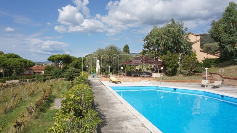 In a unique first hilly position a short distance from the sea and the famous white marble quarries of Carrara, this ancient farmhouse on three levels was transformed by the architect Aldo Pisani in the late 1970s into a refined villa. The property which extends for 10,000 square meters includes a large vineyard with relative cellars, a park with tall trees, a beautiful swimming pool area with changing room and services set within a large garden with olive trees and outdoor dining areas. The villa has access to a large double-height living room where there are large windows overlooking the garden, from here you reach the dining room left open space. Also on the ground floor is a large pantry with laundry area, a small dressing area and two bedrooms with bathrooms. From the hall there are two stairways; from the dining room you go down to the cellar and go up to the eat-in kitchen with exit to the outdoor dining area and, continuing along the staircase, you reach the balcony overlooking the living room where the library with sitting room with reading area and fireplace has been created. Through the other staircase, always with access from the living room, you enter the sleeping area on two levels and consisting of four bedrooms with their bathrooms. Linear and elegant in style, the interiors reveal the skilful combination of marble and wood in more than one detail such as the stairs in statuary marble and some bathrooms. Externally the property has a large parking area and a garage.