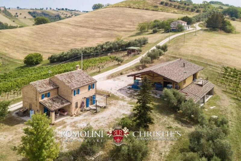 This boutique organic wine farm is located in the hills of Marche, between the Sibillini Mountains and the sea. The farm's production focuses on white and red wines (about 18,000 bottles at present, but with potential for 20,000 in full production) and extra-virgin olive oil (roughly 400 kg, constantly increasing), and everything is run strictly organically. In addition to the winery/olive mill, the property includes a small farmhouse (115 sqm, 3 bedrooms) currently inhabited by the owners. Services are all available in the nearby village (3km; 5'), and many of the best-known centers of Marche, Umbria and Emilia-Romagna can be reached in less than two hours by car (Fermo, Civitanova Marche, San Benedetto del Tronto, Antona, Assisi, Perugia, Urbino, Rimini, Riccione...). DESCRIPTION OF THE BUILDINGS Heart of the farm is the building that houses the winery and oil mill (150 sqm – 1,614 sqft, 1 bathroom), located a few meters from the farmhouse. The building is laid over two staggered floors accessible directly from the outside through two loggias (105 sqm – 1,130 sqft in total). On the upper floor is the winemaking cellar with a shop/tasting room, guest bathroom and refrigerating room. From the tasting area one then exits onto a small terrace (12 sqm – 129 sqft) overlooking the property’s vineyards. On the lower level, crossing a large loggia, is the private oil mill and a room for storing finished products. The agricultural building is fed by a 280V power line with a power output of 15 kW. The farmhouse (115 sqm – 1,237 sqft, 3 bedrooms and 2 bathrooms), on the other hand, is the result of the reconstruction of an old country house and is laid over two floors: on the lower level there is the living area of the farmhouse consisting of a large living room with fireplace, kitchen with exit to the loggia and a bathroom; going upstairs through the internal staircase, instead, one reaches the sleeping area of the house consisting of three bedrooms and a bathroom. The building is in excellent shape, with bright rooms and simple but pleasant finishes that make the house very cozy. The house is fed by a standard 220V power line with a power output 3,5 kW. EXTERIORS The farm covers a total area of about 7.0 hectares (17.3 acres) laid on the hills of the Marche region. Agricultural production can count on vineyard (2.5 ha) and olive grove (1.5 ha), while the remaining areas of the farm are devoted to meadows (2.2 ha) and mixed forest (0.8 ha). The farm is managed entirely with certified organic methods, and in addition to the typical agricultural production (oil and wine), the company is also involved in the production of cosmetics made strictly with organic zero-food-miles raw products (production and certification is currently carried out by a third party). This activity currently constitutes about 10% of the company's income, but with ad hoc investments in marketing much more could be done. DETAILS ON WINE PRODUCTION The company was started from scratch in 2012 and sold its first bottles of wine in 2017 (first production of about 5,700 bottles). In 2021 production reached 18,000 bottles, and by 2024 the entire vineyard is expected to enter full production with a projection of about 20,000 bottles per year). The Guyot training method was chosen so as to make the most out of the breeze that blows from the Sibillini Mountains toward the sea. - Vineyards surface: 2.5 hectares (6.2 acres) - Varietes: Sangiovese, Montepulciano, Cabernet, Merlot, Incrocio Bruni, Trebbiano, Ribona, Piantone di Mogliano - Altitude and exposure: 250 m asl (south) - Training: Guyot (3,500 vines / ha) - Soil composition: clayish, medium texture - Yearly production: 18,000 bottles (up to 20,000 in full production) PRODUCED WINES - Colli Maceratesi Rosso DOC: Sangiovese 50%, Montepulciano 40%, Cabernet 10% - Colli Maceratesi Rosso DOC: Sangiovese 52%, Merlot 22%, Montepulciano 20%, Cabernet 6% - Colli Maceratesi Bianco DOC: Ribona 70%, Incrocio Bruni 20%, Trebbiano 10% - Marche Rosso IGT: Sangiovese 100% - Marche Rosso IGT: Sangiovese 68%, Merlot 32% - Marche Bianco IGT: Ribona 100% - Marche Bianco IGT: Ribona 83%, Trebbiano 17% - Grappa. Ribona 100% - Grappa: Montepulciano, Petit Verdot, Cabernet DETAILS ON OIL PRODUCTION For the olive grove, some of the trees (56) date back many years (between 30 and 100 years), while the most recent planting (made by the current owners, 270 trees) is from 2014 and is coming into production in 2022, with full development expected in about ten years. Yearly production ranges around 1,500 kg of olives for the old trees (300 kg of oil) and approximately 700 kg for the new trees (100 kg of oil). - Surface: 1.5 hectares (326 trees) - Cultivar: Leccino, Carboncella, Frantoio, Moraiolo, Coroncina, Ascolana Dura, Piantone di Mogliano - Altitude: 250 m asl - Yearly production: 400 kg of oil (constantly increasing) USE AND POTENTIAL USES The company has been in operation since 2012 (when the trademark was also registered in the EU) and is currently still growing, as crops are not in full production yet. For the vineyards, the first harvest was in 2017 and full production is expected by 2024. The olive trees planted in 2014 will come into production between 2022 and 2023, with gradual increase in production in the following years (maximum productivity should be reached in about ten years). As for marketing, investment could also be made in promoting the company, especially in cosmetics, so as to further increase the company's income. In addition, speaking of development, a swimming pool could be built in the property's garden and the farmhouse could be used as a small accommodation business. CLOSEST CITIES AND TOWNS Town with services (3km; 5’), Fermo (20km; 25’), Civitanova Marche (23km; 25’), Macerata (26km; 30’), Recanati (30km; 40’), San Benedetto del Tronto (62km; 55’), Ancona (64km; 50’), Jesi (87km; 1h 10’), Corinaldo (108km; 1h 20’), Fano (114km; 1h 15’), Assisi (1