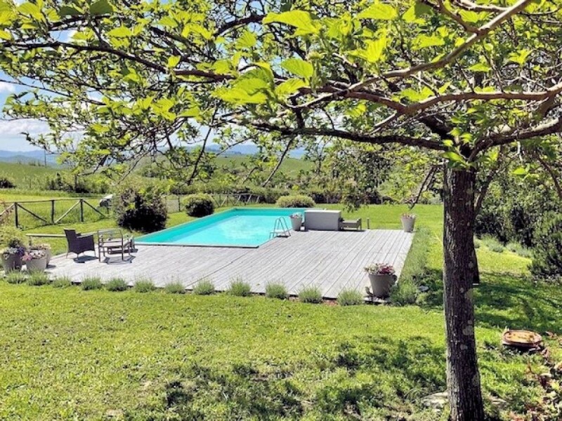 FOR PRIVACY REASONS, THE ADDRESS AND THE POINTER IN THE MAP ARE PURELY INDICATIVE AND DO NOT CORRESPOND EXACTLY TO THE LOCATION OF THE PROPERTY. UPON REQUEST WE WILL PROVIDE ALL THE NECESSARY INFORMATION. TUSCANY - PISA - FIRST VOLTERRA CAMPAIGN We offer for sale this beautiful farmhouse located in a quiet position, immersed in the uncontaminated countryside of Volterra, just a few minutes from the city and its services. The house, of great charm, has been tastefully renovated and boasts fabulous stylish interiors that respect its original character, indeed enhancing it. Externally the house has terraced gardens and a beautiful swimming pool. The property is easily accessible via an unpaved road in good condition, it is spread over a total of 375 m2, on two floors, accessible both from an internal staircase and an external staircase, plus a small 30 m2 barn currently used as a warehouse; however, this space could also be used as a garage thanks to the double door that allows access to vehicles. On the ground floor the house boasts a spectacular kitchen with large island and dining area, this leads directly to the porch with brick arches, where it is possible to find other sitting rooms and dining areas sheltered from the sun with splendid views of the flowered terraces and the surrounding countryside and garden . The porch is a cool place, perfect for having outdoor meals away from the summer heat, where you can enjoy the refreshing breezes typical of the area. Adjacent to the kitchen there is the laundry area and a technical room with pantry. From the kitchen you enter directly into the spacious and bright reception room divided into 3 areas. A winter lounge with old stone fireplace, a central lounge/dining area and a further possible dining area with large table. Also on this level we find a guest bathroom with shower. On the first floor, the hallway has been transformed into a bright, airy and summery living room with access to the balcony where you can admire a splendid view. There are four spacious bedrooms, one of which is currently used as a study with storage room. There are three bathrooms, two with a shower and one with a bathtub. Thanks to the unusual large windows, the farmhouse can boast splendid natural light which makes the interiors bright and bright and these openings allow the summer breezes to cool the rooms naturally. The house has undergone significant renovation work both internally and externally, the walls have been painted in shades of terracotta, the shutters in pastel green/blue colours, which were the typical tones of the farmhouses of the past. The choice of these colors by the owners has allowed the natural rustic nature of the house and its charm to be preserved. The sale includes 11653 m2 of land which guarantees excellent privacy. There are some olive trees, beautiful mulberry trees and an old acacia near the house. The owners take perfect care of the land where there are different types of plants, flowers.