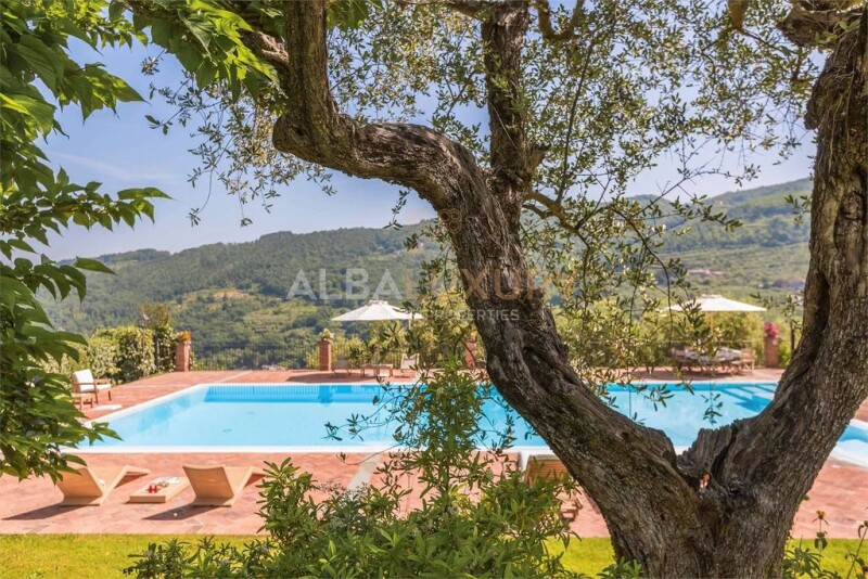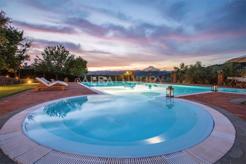 This typical Tuscan detached villa, built in the second half of the 18th century, is located on the last western slopes of Monte Albano, about 250 metres above sea level. It was originally composed of two rural houses that were joined . The exterior walls are clad in local stone like almost all the surrounding houses, thus preserving the original appearance of the building. The villa overlooks the typical Tuscan countryside, hills and olive groves, chestnut trees and oak trees, all immersed in an oasis of silence. Enhancing the property is a beautiful swimming pool It is an infinity pool with a very large hydromassage area for 8 people Under the pool there is a large changing room with 2 showers and WC. The villa has a large living-dining room with a capacity of 14 persons and has a large 15th century fireplace, with armchairs, in a separate living room. From the living room one can enjoy a splendid view of the garden and the swimming pool, as well as the panorama of the old town of Monsummano Alto. Crossing another room, you enter the large Tuscan kitchen, with its fireplace and old-style oven. Also on this floor is a bathroom decorated with an antique tub and floor, but with a modern shower design. Next door is a bedroom with a double bed, which opens onto a covered terrace furnished with a table and chairs (actually, church pews) for dining, overlooking the pool and the hill towns. On the first floor, the rooms are furnished with antiques, paintings and Persian carpets. Opposite the entrance is a stone staircase leading to the bedrooms, with a beautiful 17th-century wrought-iron railing. The upper and middle landings of the staircase are decorated with terracotta tiles representing the Florentine lily. Terracotta rosettes made of antique bronze are painted on the ceiling. On this floor is the master bedroom (30 m2) with en-suite bathroom, equipped with a steam bath/shower and a beautiful view of Monsummano Alto. There is also another bedroom, somewhat smaller, with views of the valley, olive groves, woods and swimming pool. This room shares a bathroom (with whirlpool tub and shower with light and aromatherapy) with the third bedroom, with two single beds that can be joined together to make a double bed on request. All the rooms on the upper floor have beams and old terracotta floors, carefully restored by the owners. The structure i is perfectly divisible into two separate dwellings with separate services and comforts outside and inside. In fact at the beginning, at the end of the 18th century, two families lived there. The 2 houses are totally independent because: Outside they have several automatic entrance gates and parking spaces. The garden is all open but each part of the Villa overlooks its own space. Inside, an iron door can separate the 2 houses. Each house has its own fully equipped kitchen, washing machine, dishwasher, satellite TV, etc. The villa is in the most strategic location: far from the hustle and bustle of the cities but with easy access to the Tuscan 'musts'. In fact, 95% of Tuscany's landmarks can be reached within an hour and a half by car. Montecatini Terme (5km.) 50 min. to Pisa and 50 min. to Florence by train. Monsummano Terme (2km.) is the nearest town and has 20,000 inhabitants and all the necessary services and shops etc. Within a range of 15/20 min. by car there are many places of interest to visit - the Grotte Giusti with their hot springs, one of the most famous in Italy, the quarries of Monsummano, the hills and mountains of Pistoia (skiing in winter), the Svizzera Pesciatina, countless churches, the Fucecchio marshland (of great interest for the local flora and fauna) and many small typical Tuscan villages, such as Montevettolini, Larciano, Lamporecchio, Vinci (where Leonardo was born), Montecatini Alto, Montecarlo etc).