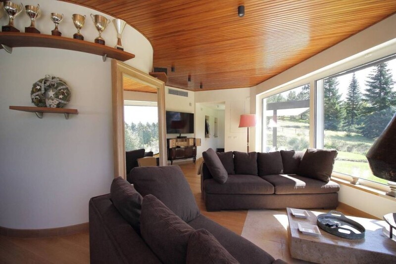 Fonte Cerreto (AQ). We are delighted to offer for sale a luxury villa located just 3 minutes walk from the Gran Sasso funicular railway. This wondeful villa has a peculiar circular plan which is a key feature of the post-modern architecture of the ‘60s. It was totally renovated in 2020 and 2021 by using high-quality materials, even for the systems. On the ground floor it consists of living area with a particular copper fireplace, kitchen, guest bathroom which leads to a hammam room; four bedrooms, each of them with en-suite bathroom, on the first floor. Thermal insulated attic room. Guest room with en-suite bathroom. 45 sqm garage. Boiler room and storage room for garden equipments. Features: three entrances with armoured and thermal insulated doors; Energy class “C”; SHUCO aluminium fixtures with thermal insulating and burglar-proof triple glasses. Thermal insulated perimetral walls; CROCI burglar-proof shutters with both central and independent control system; TECNOALARM alarm system covering 62 areas and video camera both with remote control system; video intercome; durmast parquet on the ground floor and cherry wood floors on the upper one. Brand-new gas heating system with a state-of-the-art condensing boiler; customized handcrafted kitchen; MIELE and BOSH appliances; tv system set-up in all the rooms. Electric gate and automatic irrigation system both with remote control function. The property is nestled in a 1.200 sqm garden with high trees and many plants, a place where unspoilt nature becomes the predominant element. The upland of Campo Imperatore, with its ski slopes in winter and the endless grazing lands used for the summer alpin pasture, is easily reachable both with the Gran Sasso funicular railway, which is a few steps away from the villa, and by car. Furthermore, the villa is located in an ideal position to reach places of both cultural and environmental interest; it is 20 km from L'Aquila, 135 km from Rome, 1 hour and a half drive from Fiumicino Airport and 30-minute drive from the Adriatic coast and it beaches.