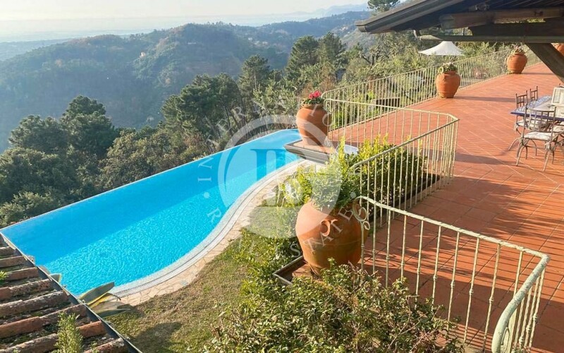 This estate islocated on the hills overlooking Versilia, a short distance from the sea and surrounded by 4 hectares of land, where there are a total of 3 villas, including a main villa, a stone outbuilding and a third unit to be completed. Each property has independent access, while the main entrance leads to a square where up to 7 cars can be comfortably parked. The garden also features a wonderful panoramic infinity pool that includes three technical rooms, one of which can be converted into a fitness area. MAIN VILLA: The main property of this beautiful estate is spread over three levels for a total of 335 square meters. The entrance is on the ground floor, where the beautiful and panoramic infinity pool is also located, hosting below 3 technical rooms, one of which can easily be transformed into a fitness area with a panoramic view. The entrance leads to the spacious living area used as a relaxation area, featuring a high-quality pool table, ideal for carefree moments. On this floor, there is also a bedroom with a private bathroom, a laundry room, and a kitchenette/bar area. A terracotta staircase leads to the first floor, where there is a bathroom with a shower, a storage room, and another living area. The area is made unique and suggestive thanks to a cavity composed of natural rock and surrounded by a glass window, spectacularizing the environment. On this floor, there is also a large and livable kitchen, connected to the outdoor barbecue area with a terracotta oven and onto the terrace of over 100 square meters, providing an exceptional panorama to the kitchen and living area. Finally, on the second floor, there is the sleeping area, introduced by a long hallway with functional built-in wardrobes, a storage/laundry room, and three bedrooms, all with seaviews. The master bedroom has a walk-in closet and an en-suite bathroom. The other two bedrooms, one twin and one double, share a common bathroom with a shower. Direct access to the outside is available from all floors, where large terracotta terraces visually expand the internal spaces surrounded by large windows. STONE OUTBUILDING: This stone property is located about 50 meters from the main villa, with independent access and developed on two levels for about 95 square meters. The interiors, furnished in the classic Tuscan style, feature terracotta floors and original wooden beams. From the stone patio, the entrance leads directly to the living room consisting of a masonry kitchenette, ceramic and wooden elements, a dining area, and a relaxing area made warm and welcoming by the large stone fireplace. On the first floor, there is the sleeping area consisting of a master bedroom, a second bedroom, and a bathroom with a shower. Furthermore, the bedrooms and the living room enjoy a seaview. THIRD PROPERTY: A rustic property nestled in the olive grove below the pool area. This unit is spread over two floors with ample space in front for adding a relaxation area with a Whirlpool tub and a splendid panorama. Pietrasanta, an enchanting town in Tuscany, is renowned for its artistic beauty and rich cultural tradition. Known as the "Little Athens" for its abundance of artworks and collaborations with international artists, Pietrasanta is also famous for its picturesque squares, cobblestone streets, and historic charm. Nestled in a hilly landscape, the town is located a short distance from the renowned Versilia coast, offering a unique blend of culture, art, and natural landscapes. DISTANCES ➢ Villa → Forte Dei Marmi: 8.2 km ➢ Villa → Camaiore: 16 km ➢ Villa → Pisa airport: 47.5 km ➢ Villa → Lerici: 41.3 km.