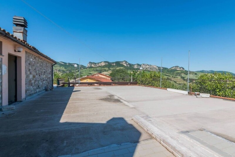 WE PRESENT THE POGGIO DUCA AGRITURISMO FOR SALE The properties making up the single complex are located in a peripheral agricultural area, approximately 7 km from the center of the municipality of San Leo and approximately 12 km from the center of the city of San Marino. San Leo is located in the Rimini hinterland at 583 meters above sea level, in the Marecchia Valley, on hilly territory partly cultivated and partly wooded, with sporadic houses that recall the typical style of agricultural houses. The cadastral surface area on which the building complex stands is equal to 31,894 m2. This complex is made up of n. 2 main buildings, to date, intended for agritourism activities, and n. 4 secondary buildings such as stables, animal shelter, barn and changing room with bathrooms. Furthermore, within this area there are recreational services such as: a tennis court, a bowling green, a large children's play area and a football pitch. The internal road system of the company is permitted by the presence of unpaved roads. The structure has a large tree-lined car park. The property has no external fence either along the access road or along the borders with the surrounding agricultural land. It develops a total cadastral area of approximately 299,905 m2 (approximately 30 hectares). Building B_building (reception/kitchens/warehouses and accessories/dining room on the ground floor and rooms on the first floor) This structure, once constituted by the farmer's home, was annexed to the activity of the rustic estate - on the ground floor a toilet room has been recreated where previously there was a storage room; externally the porch has sliding PVC closing elements (transparent curtains) mounted on aluminum frames, to recreate a closed compartment. - on the first floor, 10 rooms had been created, now the floor is being renovated to create an apartment of approximately 180 m2. Building C_building (meeting room / conference room / rooms / apartments / slaughter room / agricultural tool storage). - the meeting room of 27.36 m2, as legitimated, is currently organized as a studio apartment with a bedroom with kitchenette and bathroom; Building D_Stable for horses/storage rooms This structure, built as a pigsty, is currently used as a horse stable. Externally there is an iron staircase that leads to a "pigeon loft" with a minimum height of m. 0.20 and maximum of m. 2.15. This room was created by creating a floor above the storage rooms, located on the east side of the building. E_Services building tennis court A toilet room for disabled people was created on the first floor by dividing the authorized changing room into two rooms. As things stand, there is also a single cellar room on the ground floor with a maximum height of m. 2.35. Building F_Barn and sheep shelter Building G_Animal shelter - This structure with a height of a minimum of m. 4.55 to a maximum of m. 5.25. In the state of the place, in correspondence with the.