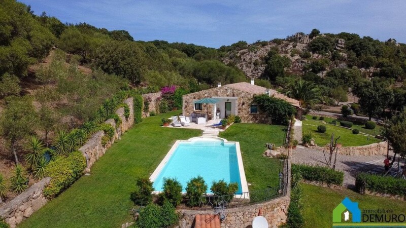 COUNTRY VILLA FOR SALE SAN PANTALEO WITH POOL Villa Monica is a delightful country residence a few minutes drive from the village of San Pantaleo and Porto Cervo An estate of 15,000 m2 fenced in all its parts and perfectly maintained which lies on a beautiful hill facing south A simple architecture in full respect of tradition and its natural evolution, of the Gallura stazzo the typical peasant residence. COMPOSITION 2 independent levels so as to be used in total autonomy 1 ground floor particularly generous amount of 150 m2 which includes a veranda entrance - a dining room - kitchen - living room - study used as a bedroom - 2 bedrooms - two bathrooms 1 basement floor of approximately 120 m2 intended for use as part residential and part cellar where there is a large tavern room with fireplace - 2 bedrooms and two bathrooms - laundry room There is also a convenient covered car park of around 60 m THE SWIMMING POOL Just next to the house is the swimming pool (heated - 12 x 5) the real strong point of the proposal is the lawn area in front overlooking the mountains of San Pantaleo. THE PARK Not least the swimming pool, it is a green oasis that enhances the quality of life in terms of tranquility and privacy An olive grove - vineyard and fruit trees scattered across several points and enriched by various typical Gallura plants have been planted. Access is served by an automatic gate and a paved road up to the house EQUIPMENT - System of hot and cold air conditioning which allows use in different periods of the year including an insert fireplace - 4 wells and related cisterns - agricultural water from the Reclamation Consortium - Lighting and irrigation system -Video intercom FURNISHINGS Villa Monica is sold furnished with the exception of personal effects, so as to be immediately inhabited LOGISTICS - San Pantaleo 7 km - Abbiadori 7 km - Porto Cervo 12 - Prima Spiaggia 4 km - Olbia airport 29 km--6b8f9771e52167e209ee521610996d81!.