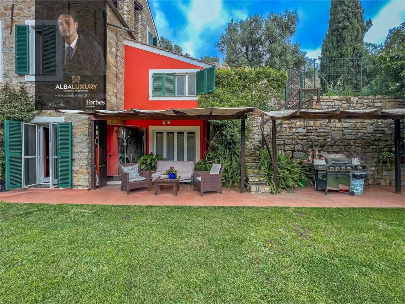 Prestige Property with Panoramic View of Sanremo Situated in the charming Ligurian hills near Sanremo, this residential complex embodies the pinnacle of luxury and country beauty. The estate consists of three main residences, set in a protected and secure environment, accessible via an exclusive road, with ample parking space and a spacious garage that can accommodate 6 to 8 vehicles. Main Building - Traditional Ligurian Villa: The main villa, a typical Ligurian residence of 210 sqm, offers breathtaking panoramic sea views. Thanks to meticulous renovation, very high quality finishes have been provided while keeping the local tradition alive and integrating modern touches. The villa is surrounded by a 500 square metre garden with a variety of lush and vibrant plants, and offers a cosy living area, a dining room and a barbecue area under a charming wooden veranda. The property unfolds on different levels among the olive trees, culminating in a custom-made infinity pool with a fully equipped sun terrace, a shower area, a changing room and comfortable sun loungers offering breathtaking sea views. Interior of the Main Villa: The ground floor houses a cosy living room with a fireplace, sofas and armchairs, a fully equipped kitchen with an attached pantry, and a spacious dining room with floor-to-ceiling windows overlooking the garden. The second level houses a private study, a master bedroom with en-suite bathroom and a large walk-in wardrobe, and a second double bedroom with en-suite bathroom and large walk-in wardrobes, connected to an additional single bedroom that can be converted into a master suite. The third level offers a cosy and relaxing atmosphere, with a library/living room furnished with sofas and armchairs, which opens onto a large panoramic terrace overlooking the valley. Completing this level are a laundry room and a veranda for drying. Additional Tavern and Residence: In addition to the main villa, there is a tavern suitable for guests, with a 60 sqm dining room and a large wooden porch. This space offers a living area with a charming fireplace, a dining room for 12 to 16 persons, a pantry and a bathroom. The property also includes a newly built villa of 112 sqm, adjacent to the main building and surrounded by a spacious sun terrace and a flower garden of over 100 sqm. This residence is on one level and consists of three bedrooms, two bathrooms and a large open space with a living room featuring floor-to-ceiling windows, a kitchen and a dining room overlooking the garden.
