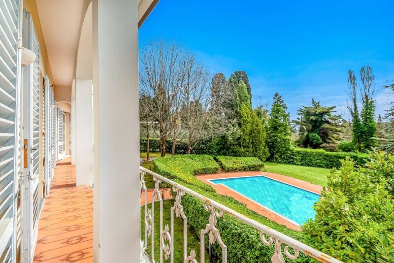 This sumptuous and refined villa stands in one of the most prestigious areas of Lucca, nestled in the hills a few kilometers from the city center, guaranteeing an environment of luxury and tranquility with easy access to the main services. With a total area of approximately 700m2 across four floors, the residence has 7 bedrooms and 7 bathrooms, offering a living experience of the highest standard. Characterized by large open spaces and generous environments, the villa integrates harmoniously into a private garden of approximately 6000 m2, embellished with a splendid swimming pool and a relaxation area set among the lush vegetation. In addition, there is a tennis court, currently under renovation. The main entrance is through a large reception hall, surmounted by a majestic double staircase. The central hall, large and bright, directly overlooks the swimming pool, while on the sides there are two spacious rooms, one used as a dining room with fireplace and the other as a living room with another fireplace. The first floor houses the sleeping area, with two bedrooms, two bathrooms and three rooms with bathroom, as well as a further storage space. A large porch offers panoramic views of the surrounding nature and the swimming pool, accessible from every room. A staircase leads to another sleeping area on the upper floor, consisting of two bedrooms with ensuite bathroom. The floor below houses a spacious, fully equipped kitchen with a large table and a fireplace, with direct access to an outdoor dining area. Furthermore, we find a bathroom, a hallway and three bedrooms, one of which is a service room with ensuite bathroom, and a large versatile room to be used according to preferences. The villa stands out for its fine finishes, including marble, artistic majolica and wood, and elegantly crafted furnishings. Ample outdoor parking space and garage availability complete the comforts of this extraordinary home. *For privacy reasons the address in the form is indicative and the property is still located in the immediate vicinity*.