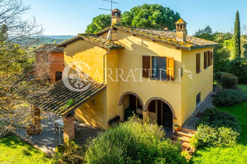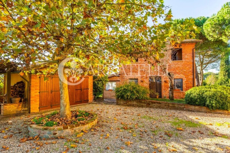 Farmhouse of over 330 sqm with garage and private garden in the countryside of Foiano della Chiana. Description: The main farmhouse of over 220 sqm is in excellent condition and is on two levels. The ground floor is accessed through a porch that houses a wood-burning oven to the entrance that leads into the beautiful double living room with working stone fireplace and parquet floors. Connected to this is a dining room next to the very spacious and bright eat-in kitchen. From here a small hallway leads to the T-floor service bathroom and a laundry room. Floor 1 is accessed by an elegant internal staircase and the ancient external staircase. A corridor connects the four bedrooms (one of which is now a study), which all have excellent spaces. Concluding the floor are two bathrooms (one with a Jacuzzi) and two terraces. Outbuildings A few steps away from the farmhouse is a former barn of about 75 square meters that has been renovated to create a lovely depandance on two levels, now in its unfinished state. After possible renovation it will accommodate 2 bedrooms, 2 bathrooms and a living area with kitchenette. Not far from this is also the garage of over 20 sqm. Condition and finishes The property is in excellent condition after a renovation in the late 1990s that went to enhance the original features creating an optimal environment for everyday living. The exterior facade is mixed plaster and brick, the depandancé is currently brick. Inside the house there are parquet floors, ceilings with exposed beams, fixtures in good condition with double glazing. Radiator heating is supplied by the municipal methane network. Present connection to the aqueduct and well. Also present electric gate and 3Kw photovoltaic system. Outdoor space The property enjoys about 6000 square meters of fully fenced garden with 60 olive trees, barbecue corner, porches and a small vegetable garden. Potential uses The farmhouse lends itself to be an excellent first or second home for those looking for a ready property in a convenient but quiet location. Given its composition, it is also ideal to be included in the short rental business. Location & Lifestyle Located in the countryside of Foiano della Chiana the farmhouse enjoys a quiet and sheltered location but very close to the center at the same time. Within a 2-minute drive all the necessary daily services are reachable. The main cultural and tourist centers of the area such as Pienza, Montepulciano, Monticchiello, Cortona, Montalcino, and San Quirico are reachable in a maximum of 40 minutes by car in addition to the cities of Siena, Perugia and Arezzo reachable in 45 minutes. The highway exit connecting to Florence and Rome is only a 7-minute drive away, while about 20 km away is the train station with quick connections to major cities.