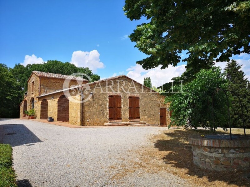 Prestigious farmhouse (870sqm considering the annexes), located a few kilometres from Pienza and Montepulciano. It includes 10 bedrooms, 8 bathrooms, 4 ha of plot with 300 olive groves and a 16*6.5 m swimming pool. The location is exclusive, quiet and panoramic, with a 360 view over the hills of Val D'Orcia. Location This magnificent and prestigious property is located in a place of rare beauty, a few kilometers from the touristic Towns of Montepulciano and Pienza where art, culture and landscape come together in a beautiful combination. Very convenient access to the motorway which allows to reach Florence in about 1 hour and 30 minutes and Rome in 2 hours. The whole surrounding area is characterized by beautiful countryside, perfectly kept vineyards, unique views to the countryside and the ancient villages, including Montefollonico and Montepulciano. Description The main building is an ancient stone farmhouse of 360sqm, arranged over 2 floors. On the Ground Floor there is a kitchen, dining room, big sitting room with fireplace and bathroom. The First Floor comprises 4 bedrooms and 3 bathrooms. We would like to emphasize that the rooms are very bright because they are equipped with wide windows, which is an unusual characteristic in this kind of buildings. In the immediate surroundings of the main house there are two outbuildings, for a total of 410sqm, which are used as guest apartments. They include 6 bedrooms and 4 bathrooms. The outbuildings are in a good state, they can be already occupied. There is a fourth building of 100sqm now used as a storage. The plot is 4 ha, with an olive grove of about 300 plants. Outdoor spaces The plot included is about 4ha and comprises an olive grove and the park with swimming pool. State and finishes The property is overall in a good state of maintenance. The finishes are of a good quality and follows the Tuscan tradition. All connections are present and functioning. ENERGY CLASS "G" EPI (Energy Performance Index) 265,42 kWh/sq. m year. Potential use The property is perfectly suitable to be used as a private main residence. It could also be used, with the proper changes, as a charming accommodation facility.