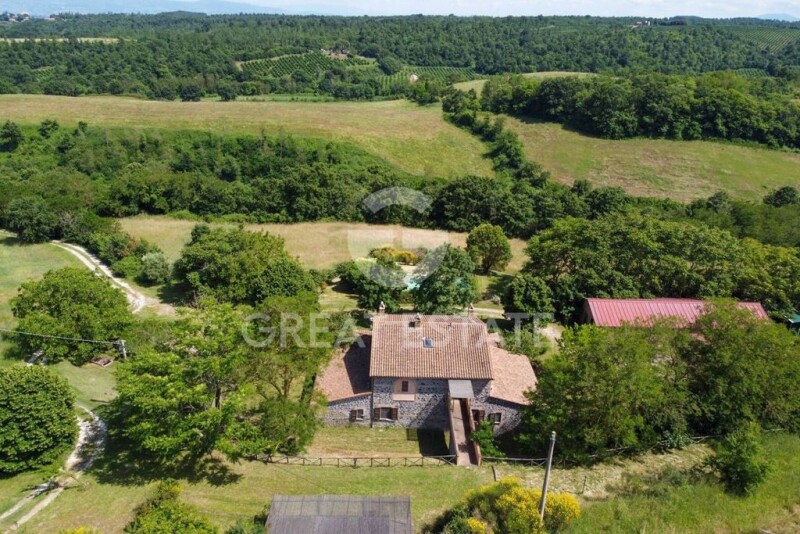Podere Il Giglio is a splendid historic farmhouse from the early 1900's completely renovated, with panoramic views of the surrounding countryside. The farmhouse is made up of two independent residential units for a total surface area of approximately 334 commercial square meters and with separate accesses. The property includes a 10x5 meter swimming pool, a tool warehouse, a large shed of approximately 198 sqm and approximately 4.6 hectares of land. In the countryside of Orvieto, Podere Il Giglio offers peace and nature, large spaces and versatility. The farmhouse is located in open countryside and can be easily reached via a short stretch of dirt road. Rustic and authentic character, in a splendid natural setting: Podere Il Giglio is a farmhouse from the early 1900's, completely renovated, with breathtaking views of the surrounding countryside. The farmhouse is made up of two independent residential units for a total surface area of approximately 334 commercial square meters, with separate accesses. The property includes a 10x5 meter swimming pool, a warehouse for tools, a shed with a cadastral surface area of 198 sqm finished inside and agricultural land with a total surface area of approximately 46,827 sqm of which approximately 1,900 sqm is the courtyard garden. The ground floor of the farmhouse has 4 rooms, 3 bathrooms, a lounge, a dining room, a kitchen, a bedroom and a guest bathroom. The upper floor is accessible from the outside, via a characteristic bridge, and consists of an independent unit with a large living area, kitchen, 2 bedrooms, 2 bathrooms and a technical room. The property extends over approximately 4.6 hectares of land, equipped with an irrigation well and automatic irrigation system. Also part of the land is an orchard and a beautiful laundrette in production consisting of around 700 plants. State of repair The property is renovated and move-in ready. There are two wood-burning fireplaces and it is possible to install two stoves (wood or pellet). The ceilings have wooden beams and terracotta tiles. On the ground floor the floors are in square terracotta and wood, while on the upper floor they are all in wood. The windows are made of wood and double glass, equipped with screens. Utilities The main utilities are active. Municipal aqueduct and irrigation well; LPG for heating. Use and Potential Uses Podere Il Giglio is ideally suited to be a main residence, given its proximity to amenities. Also ideal as a second home, to spend quiet moments in total privacy, surrounded by the wonderful Umbrian countryside. Given its characteristics, the property can also be included in the tourist rental circuit. Location The property is located just 14 km from the Orvieto A1 exit and the train station, 5 km from Porano and 9 km from the center of Orvieto. Lake Bolsena is about 15 minutes away. Florence can be reached in about 2 hours, Rome is just 1 hour away. Land registry details The Great Estate group carries out a technical due diligence on each property acquired, through the seller's technician, which allows us to know in detail the urban and cadastral status of the property. This due diligence may be requested by the customer at the time of a real interest in the property.