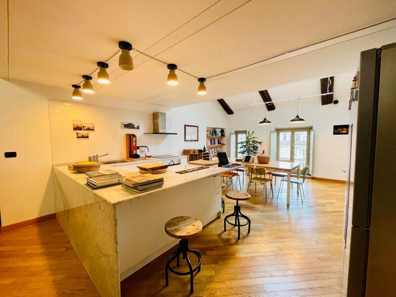 Piazza Vittorio Veneto, historic square in the center of Turin, synergy between baroque and neoclassicism, a combination elegantly interpreted by the architect Giuseppe Frizzi who in 1821 designed the buildings surrounding the square. Located on the fifth and top floor with lift, the property is the result of a careful renovation of the entire floor of the building, divided into five apartments: the works, completed in 2016, gave life to a modern floor that combines elegantly with period details. The apartment develops through a large room with open kitchen and consists of a bedroom and a bathroom; an elegant internal staircase leads to the mezzanine with bedroom and bathroom. The view on the internal courtyard gives an unusual tranquility and silence for the center of Turin. The apartment is in excellent condition, starting from the oak wood flooring, modern fixtures and services, electrical system, armored door. Underfloor heating and hot / cold air conditioning in every room ensure optimal temperature management. Very bright thanks to the dormer windows, remotely controllable. Very low management costs, which can be estimated at €600 per season for heating, and only €500 for the condominium. Possibility of loading / unloading in the courtyard, the cellar in the basement completes the property. Cadastral category A/4, cadastral income of €280. For information: GIEFFE PATRIMONI Real Estate Advisor, Turin – London – Alba – Milan – Rome. (+39) 011 / 76.000.11.