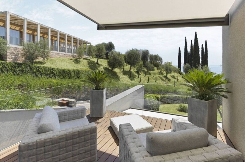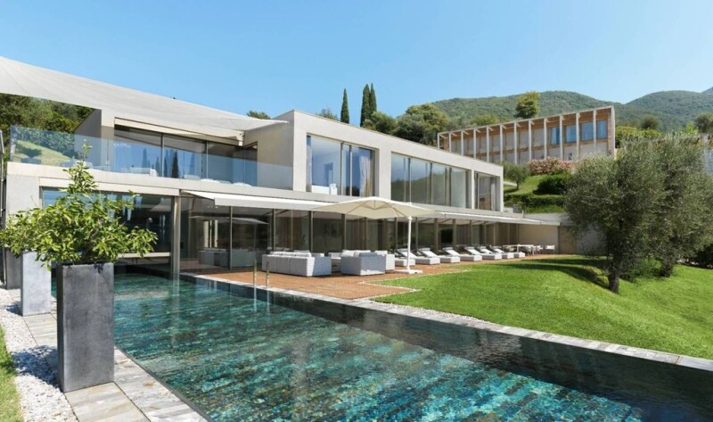 Ref: EB-035-185 An extraordinary Collection of Architectural Masterpieces, the Villas are immersed in the evergreen landscape with a perfect view of Lake Garda. Motifs of light and color characterize this exclusive front row seat overlooking Lake Garda, creating Mediterranean-inspired spaces and terraces. Thanks to the large windows, the facades let the landscape, dominated by olive groves and cypresses, make its way into the interiors. The result: a harmonious picture made up of natural colors and elegant design elements. Inside a recent Luxury Resort there are 7 dream villas and 7 fully furnished and equipped apartments. Convenient private heliport for travel. The Luxurious Dwellings were designed by an important Austrian architect. Urban chic this is the keyword of a unique holiday paradise. The sumptuous villa with private SPA is gently nestled on the hill and is reminiscent of a modern city loft, redefined by the magnificent setting of Lake Garda. Elegant minimalism, transparency and soft shades complete the idyllic atmosphere. The villa has an area of 540 square meters. Composition: - A double bedroom with open private bathroom with shower and bathtub overlooking the lake. - Three double bedrooms, each with private bathroom and shower - Open space with living room, dining room and fully equipped kitchen - Lounge area with pool table - Private panoramic terrace overlooking the lake - Panoramic private swimming pool - Private SPA with sauna, Turkish bath and relaxation area - Gym equipment - Private garage - Laundry. The Resort is equipped with every kind of latest generation comfort and guarantees many services to all homes: Renowned restaurant for lunch and dinner, Bar, Daily cleaning, Wi-Fi, Private parking, 24/7 concierge service, 24/7 security service, Private golf cart to move around the Resort, Free shuttle service on request up to 10am km, SPA treatments, Cosmetics and body care products, Laundry, Private butler, Private chef, Private transfers, Boat tours, Helicopter tours.