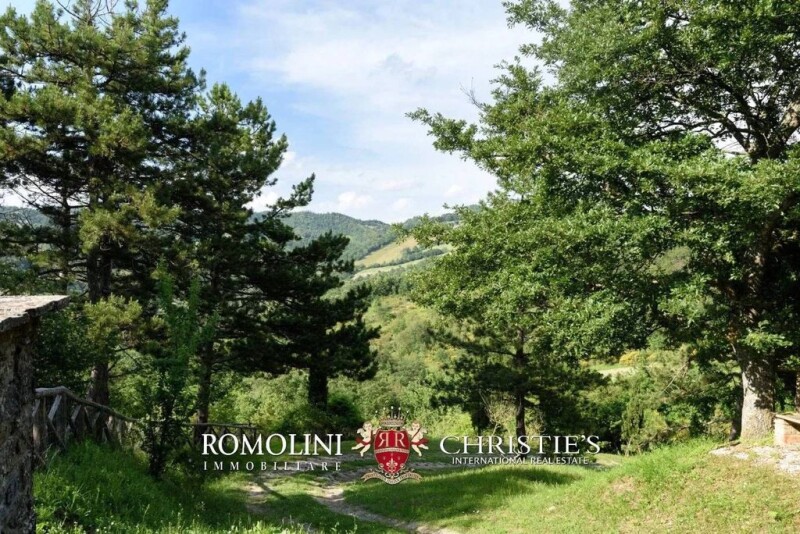On the green hills of Umbria, in a reserved and very panoramic position not far from the border with Marche, characteristic renovated stone farmhouse for sale. The building (over 300 sqm) is the result of a skillful restoration work that has created a beautiful private house with five bedrooms and rustic living areas of great charm. A 15,000-sqm fenced garden surrounds the house and offers comfortable nooks and crannies for relaxing outdoors. The house can be reached via an unpaved road in excellent condition, and basic services are available in the town of Pietralunga (12km; 20’). For shopping malls and hospital, one just need to reach Città di Castello (25’) going down to the Tiber Valley. From here the E45 highway leads quickly to renowned centers such as Sansepolcro, Perugia, Anghiari and Gubbio. DESCRIPTION OF THE BUILDINGS, STATE AND FINISHES The country house (310 sqm – 3,337 sqft, 5 bedrooms and 4 bathrooms) is structured on three floors above ground. Entering we find ourselves in a large hall with stone floors and ceilings that leads to the kitchen with adjoining dining room, private office space and three bedrooms (two with private bathrooms). Up on the second floor is a large living room with original stone fireplace and terrace. Two bedrooms with private bathrooms complete the floor. A wrought-iron and wooden staircase leads to the attic where an additional bedroom has been created. The building was most likely a watchtower, expanded over the centuries when the fortification had by then given way to a farmhouse (which dates in its present form to the mid-17th century). The current owners purchased the building in 1997, little more than a ruin, and have gone to great length to restore the farmhouse while keeping most of the finishes and characteristic elements such as the stone walls, oak beams on the ceilings, the animal feeding troughs in the old stables on the ground floor, and the niches in which the farmers stored tools and kitchen utensils. EXTERIOR The building is surrounded by 3.3 hectares (3.1 acres) of land: the part all around the farmhouse is fenced off (about 1.5 ha) and devoted entirely to gardens, set on a slight slope and characterized by dry-stone walls interspersed with flower beds and hedges. To the south of the house, immediately outside the building, is a stone patio, while to the east the paved terrace is ideal for watching the sunrise while having breakfast in summer. Immediately below the farmhouse there is also an oven with a barbecue and masonry shed. In contrast, the rest of the land (1.7 ha) is covered by an oak forest. CLOSEST CITIES AND TOWNS Pietralunga (12km; 20’), Città di Castello (18km; 25’), Gubbio (33km; 45’), Umbertide (34km; 35’), Sansepolcro (37km; 35’), Anghiari (43km; 45’), Urbino (55km; 1h 10’), Tuoro sul Trasimeno (58km; 1h 5’), Perugia (64km; 1h), Assisi (80km; 1h 10’), Fano (82km; 1h 20’), Spello (83km; 1h), Spoleto (116km; 1h 30’), Siena (128km; 2h), Florence (130km; 2h), Orvieto (137km; 2h), CLOSEST AIRPORTS Perugia San Francesco (63km; 55’), Ancona R. Sanzio (124km; 1h 50’), Firenze A. Vespucci (151km; 2h), Pisa G. Galilei (211km; 2h 45’), Bologna G. Marconi (212km; 2h 35’) Roma Ciampino (245km; 2h 50’), Roma Fiumicino (258km; 3h).