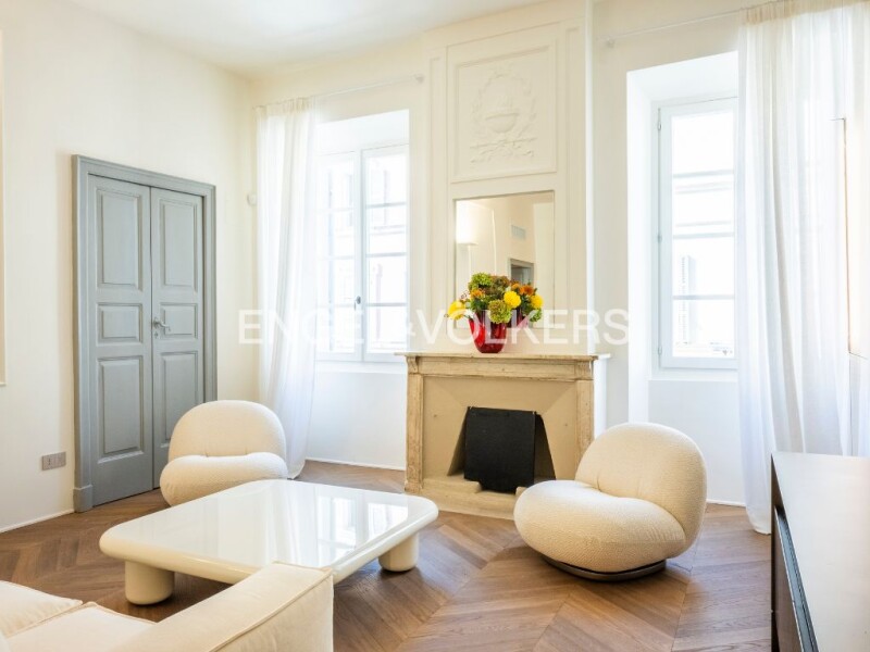 Bright jewel in Cavour area with garage Immersed in the elegance of the Cavour area, this apartment on the second floor of a historic building with a lift offers a timeless atmosphere. The 2023 renovation has transformed the interiors into a treasure trove of Italian design, with top quality furniture and Miele appliances. The spacious entrance, which can be used as a TV area, welcomes us with elegance and comfort, with an iconic Camaleonda sofa in an intriguing moss green. This leads to a double living room, lit by two panoramic windows overlooking the main street and monuments, and enhanced by period details, including a refined stone fireplace topped with a bas-relief medallion. This space hosts a large and immaculate conversation area and a convivial and more colourful dining area with an Allure table and comfortable chairs in a nuanced palette. The open-plan kitchen, with its elegant and austere design, is separated by elegant steel and glass sliding doors that add a touch of modern practicality. The luxurious master suite, with its en-suite bathroom and walk-in wardrobe, is surrounded by a refined element in an elegant French blue that matches the soft velvet bed in the same shade, promising comfort and style. The second double bedroom, with a beautiful vaulted ceiling, two windows and a lovely fireplace, also has an en-suite bathroom and walk-in wardrobe, offering a refined oasis of tranquillity. The third bedroom, with a king-size bed, walk-in wardrobe and en-suite bathroom, completes the tranquil spaces and overlooks the entrance, making it ideal as a guest room. The staff area, with a bathroom and laundry room, ensures practicality and discretion. In this apartment, every detail reflects the harmony between history and modernity, creating a unique environment in the heart of Parma. We are in the liveliest and most vibrant area of the city, the true drawing room of Parma. The shopping streets, bars and restaurants are just a few steps away, as are theatres and museums. The Palazzo, formerly "Melloni-Ortalli Laurent", was a residence in the centre of Parma owned by the Melloni family in the early 1800s. Later the property passed to Margherita Morardet, who turned the palace into a meeting place for cultured people and donated large sums to charity. After her death in 1880, the property passed to Ortalli Laurent Valentino, a music lover, and one of his successors sold it in 1917 to Professor Avv. Luigi Lusignani, a university professor, banker, politician and mayor of Parma from 1906 to 1909. He sold the palace in 1919, dividing it among several buyers. The apartment, located on the second floor, overlooks the pedestrian street, and participates in the lively life of the historical centre, while remaining very quiet and peaceful.