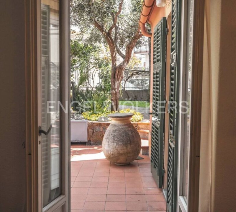 In the heart of Albissola Marina, an enchanting Ligurian village famous for its ceramic tradition, just steps from the sea and wide beaches, we offer for sale a unique residence, expertly renovated by an architect and the owner. A perfect blend of authenticity and modern comfort, capable of providing an exclusive living experience. This home, which has hosted three generations of the same family, is perfectly suited as both a main residence and a refined holiday home. Overlooking the park of an ancient noble residence, the property stands out for its large private garden, a verdant and sunny oasis close to the historic center. Mediterranean plants and fruit trees create an intimate and rejuvenating atmosphere, making this outdoor space a rarity in such a central setting. The renovation work has managed to enhance the historic soul of the house, preserving its centuries-old essence and introducing design elements that confer brightness and comfort. The terracotta flooring, extending seamlessly between indoors and outdoors, provides coherence and harmony to the spaces. Inside, the spaces are characterized by walls of white lime and a suggestive curvilinear staircase leading to the first floor, creating a perfect balance between tradition and modernity. The arrangement of the rooms on three different sides ensures maximum privacy, while the charming views of the garden and the characteristic adjacent alley offer picturesque glimpses. The facades decorated with elegant trompe-l'œil, typical of the Ligurian Riviera, tell the story of this family home, now ready to welcome those who wish to live in an exclusive retreat, immersed in the beauty and tranquility of one of the most charming villages in Liguria. An unmissable opportunity for those seeking a home with timeless charm, in a unique and historically rich setting. Contact us for more information or to book a visit. Albissola Marina is a charming coastal village located on the beautiful Ligurian coast, just a stone's throw from other famous seaside tourist destinations such as Celle Ligure and Varazze. Nestled along the picturesque Riviera di Ponente, the village overlooks the crystal-clear Ligurian Sea, offering breathtaking views and golden sunsets. Surrounded by gentle hills dotted with olive groves, Albissola Marina boasts a sandy shoreline and a picturesque seaside promenade animated by elegant cafes and characteristic restaurants. The village is renowned for its centuries-old ceramic tradition, evidenced by the fascinating artisan shops and artworks scattered among its historic alleys.