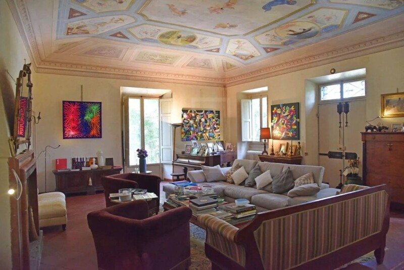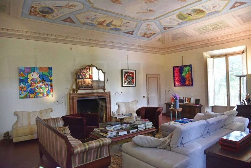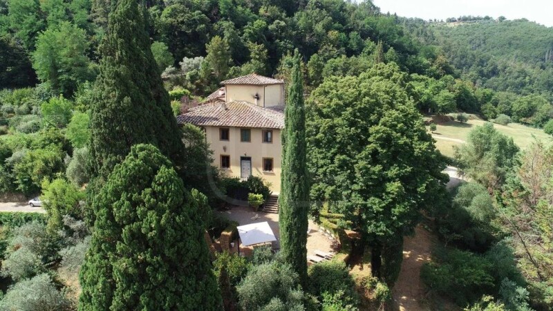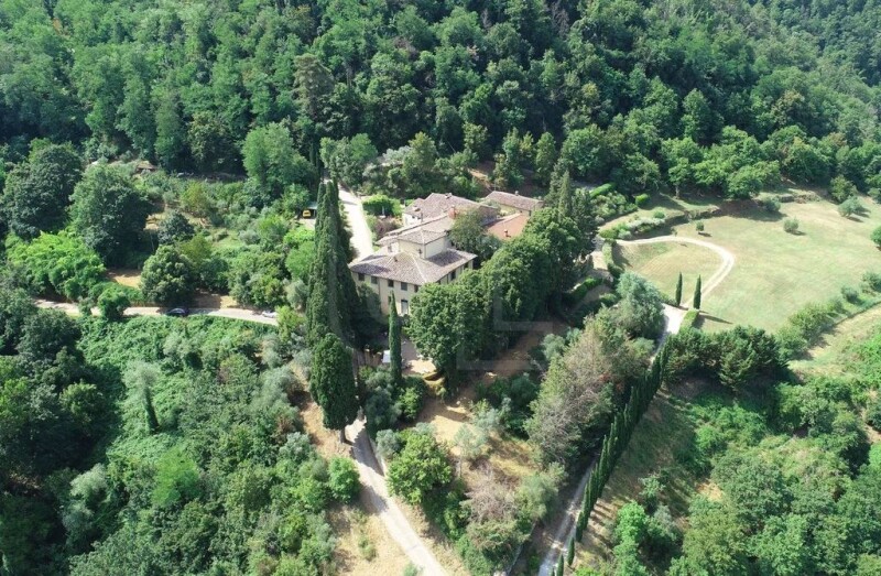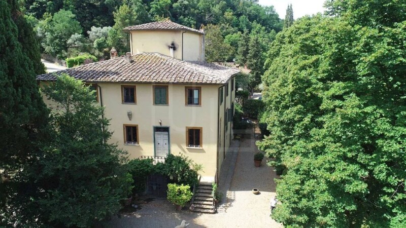 Exclusive historic villa located in the beautiful setting of the hills of Florence, in one of the areas where Chianti expresses all its character, surrounded by typical Tuscan natural landscape. Set in an oasis of peace although perfectly situated for reaching the nearby cities of Florence and Siena, where expanses of vineyards alternate with majestic olive groves and dense woods. The villa dates back to the 13th century and was originally the tower belonging to the Baldovini family. Later, it was owned by the historic and important Pitti family of Florence. During the 18th and 15th centuries, the property was embellished with frescoes and architectural improvements and an aristocratic chapel with courtyard. In addition, an Italian garden and a wooded park of tall trees with waterfalls were created. The splendid villa is free on three sides, spread over four floors plus the turret and has a surface area of 650 sqm, plus the cellar rooms of 140 sqm located on the ground floor and the chapel of about 50 sqm. On the basement/ground floor there are four vaulted rooms in brick and old stone with modern terracotta flooring and a large bathroom. The first floor houses a completely frescoed entrance hall, a large reception hall of over 60 sq.m with a 17th-century pink marble fireplace, ancient frescoes by Luigi Mussini (important painter from Siena of the Romantic period - 19th century) and access to the Italian garden, a living room with a Renaissance fireplace in pietra serena and wooden beams, a kitchen, two frescoed studies, a dining room with access to the raised garden, a bedroom, two bathrooms, four hallways and a storeroom. The second floor consists of a living room with a neoclassical fireplace in white Carrara marble, a master bedroom with bathroom and closet, a double bedroom with frescoes, a large bathroom, a frescoed bedroom with en-suite bathroom, a cloakroom/laundry room with storage room and a small guest room/study. On the third floor there are a large room/study of about 55 sqm with a ceiling with wooden beams and a terracotta staircase leading to the tower. The tower houses a double bedroom with a wood-beamed ceiling, ensuite bathroom and a south facing view of the surrounding nature and the adjacent hillside. Internally, there is an immediate sensation of entering a prestigious environment rich in history, but at the same time fresh and very pleasant. The aristocratic chapel of approximately 50 sqm with sacristy consists of two rooms. The property is completed by agricultural land and a park with various paths and centuries-old plants of olive, bamboo, laurel, broom, pear, acacia, cypress, oak, chestnut, linden, horse chestnut, peach, apple, magnolia, fig, yew and other rare plants. In addition, there is an extensive Italian-style garden with box hedges, which houses the Chapel and centuries-old linden and horse chestnut trees, enclosed in a north-west, north-east and south-east direction by ancient stone walls. The property is located in the south of Florence, at the gateway to the Chianti region (and the famous Gallo Nero DOC area), in a typically Tuscan hilly valley about 15 km from the city. The villa, immersed in the green hills and typical Chianti vineyards, is located in an extremely quiet and peaceful position. It is situated very close to a small village, where there are public services and basic shops (two supermarkets, pharmacy, laundry, newsagent and stationery shop etc.), as well as four bars and three restaurants.