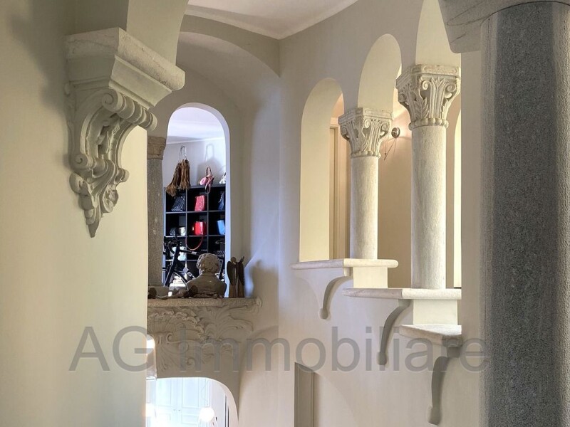 A stone's throw from the shores of the lake, in a very sunny area, a large villa with lake view is proposed. This property is unique in its kind both as regards the architecture composed of singular shapes as well as the interiors finished with the finest materials and chosen with great care and good taste. All the environments have been designed to be unique and all the solutions adopted have been designed for this object. The property is spread over 3 levels and on the ground floor includes a large hallway, dining room and on a raised level a large living room and bathroom for guests. The basement has a bathroom and a fully equipped kitchen with a large window that leads to the garden with a gazebo and an outdoor kitchen. On the same floor are the cellar and technical rooms. On the first floor there is a study, a bedroom with en-suite bathroom, staggered by half a floor there are 5 bedrooms and 3 bathrooms. All the rooms are characterized by large windows that allow you to fully enjoy the wonderful lake view and of course from the various rooms you can access the flat garden. All the facilities are of the new generation and have undergone renovation along with the rest of the complex at the same time. Cl. B - Ipe 156.00 Kwh / sqm.