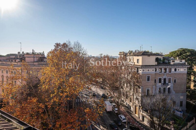This gorgeous penthouse is located a few steps away from Villa Borghese, in one of the most prestigious, sought-after and safe areas of Rome, between the residential neighborhoods of Parioli and Pinciano. Located on the fifth and sixth, top floors, of an elegant building from the early 1900s with a lift, the property extends over 320 sqm indoor, in addition to a terrace of approximately 30 sqms and enjoys an excellent distribution of space. The large main entrance opens onto a large entertaining area consisting of various living rooms enriched with several windows and balconies which make the environment bright and welcoming. Upstairs, a living area and a partially covered terrace allow to enjoy outdoor space all year round. The sleeping area includes 3 bedrooms and 3 bathrooms, all in marble. A further area includes a large eat-in kitchen, a family room or service room with service bathroom all accessible also from a convenient second entrance. The apartment stands out for the airiness of the rooms that enjoy 3.80m high ceilings, for the open views that offer panoramic glimpses of the greenery of Villa Borghese and the gardens of Villa Taverna and for the brightness due to the triple exposure. On the 6th floor, the apartment enjoys an extra room: a comfortable attic of approximately 24 sqm, reachable from the service staircase and adjacent to top floor living room with terrace. The proximity to services, shops and transport makes this apartment ideal for those who want to live in a prestigious and well-served area, connected to the rest of the city.