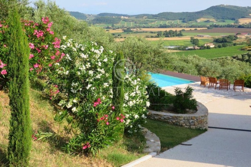 "Casale Eden - (Eden Country house)" is nestled in the heart of an Umbrian village, situated between Lake Trasimeno and Perugia. Despite its proximity to amenities, this exclusive property enjoys complete privacy thanks to a 2,500 sqm park overlooking the valley. Stone pathways wind through olive trees, fruit plants, and hedges in the lush garden, which also features a panoramic swimming pool. The 253 sqm country house is bathed in sunlight throughout the day and boasts spacious areas where the kitchen and living room seamlessly blend with the outdoors via a generous 28 sqm porch. The ground floor is completed by two bedrooms and two bathrooms. Upstairs, two 60 sqm apartments provide additional flexibility for family or guests and can be easily connected. In the heart of a typical Umbrian village, characterized by a castle and located between the picturesque Lake Trasimeno and the regional capital Perugia, lies "Eden Country house". This property owes its name to the lush garden, which, in addition to its 39 olive trees, hosts an enchanting mix of native and exotic fruit plants, ensuring a year-round supply of fruits. The 2,500 sqm park is fully fenced, guaranteeing complete privacy. Access is through a gate, with a paved driveway flanked by cypress trees leading to the country house. Here, the panorama opens up to a green valley that captures the eye. The property is set on a natural south-facing terrace, strategically utilised to host level, paved outdoor spaces with spectacular views. A few steps from the country house, on the same level, is a swimming pool with a charming Caribbean effect, thanks to its turquoise water and internal lighting system. A 28 sqm porch seamlessly connects the outdoor spaces with the interiors of the country house, making the property ideal for summer evenings in good company. The ground floor features a bright and spacious open-plan area comprising a living room and a large kitchen with an island, connected by a traditional brick arch that harmoniously blends with contemporary furnishings. This floor is completed by two double bedrooms and two bathrooms. Upstairs, there are two independent apartments of about 60 sqm each, accessible separately to ensure maximum privacy for guests. Each apartment includes a living room, a kitchen, a double bedroom, and a bathroom. These spaces can be easily connected to each other. "Casale Eden" offers the opportunity to experience true Italian living, immersed in the beauty and tranquillity of the Umbrian countryside, within an exclusive residence that ensures absolute privacy in a typical village setting. State of repair The ground floor was completely renovated in 2010, creating a spacious apartment with a large open-plan kitchen and living area. The renovation features a modern style, and a porch has been added to make the most of the paved area overlooking the panorama. The upper floor is divided into two apartments with independent access, which can easily be connected to form a larger unit. The overall finishes are excellent, and the exterior spaces are beautifully maintained. Utilities All services are available. Heating is provided by LPG gas. Internet is available. There is a mains water supply. Use and Potential Uses The property is perfect as a second home, offering ample space and privacy for guests and other family members, thanks to the two additional apartments, which can also be combined as needed. The beautiful garden, location, and pool make "Casale Eden" also ideal as an investment for holiday rentals. Location "Casale Eden" enjoys a strategic and privileged location in the heart of Umbria, yet it boasts an undisturbed panorama. Lake Trasimeno is easily reachable in 20 minutes, as is Perugia. Florence and Rome are both within a two-hour drive, making it an excellent strategic base from which to explore Umbria and Tuscany. Land registry details The Great Estate group carries out a technical due diligence on each property acquired, through the seller's technician, which allows us to know in detail the urban and cadastral status of the property. This due diligence may be requested by the customer at the time of a real interest in the property.