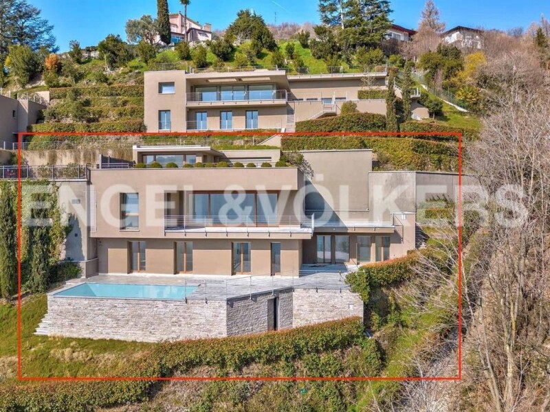 On the hills of the enchanting town of Cernobbio, we offer the sale of three modern newly built villas with the possibility of choosing the finishes. Harmoniously suited to the geographical conditions, they enchant with a fantastic view of Lake Como and its surroundings. The individual villas have a private garden and a beautiful infinity pool. Built in a contemporary and practical style, with high-quality materials and furnishings, the villas each offer three levels of living space connected by stairs, with two villas also featuring a lift. Villa B has a total area of 365 m2. The street level has a convenient garage for three cars and utility rooms. The ground floor below the street has a large living area with a separate eat-in kitchen and a bathroom. The first sub-street level has three large bedrooms, one with an en-suite bathroom, and two other bathrooms complete the floor. A magical swimming pool allows you to enjoy an amazing 180-degree lake view. The villa has a radiant heating/cooling and air conditioning system, including an air/water type heat pump with a reverse cycle and a dehumidification system. During planning and execution, great attention was paid to energy efficiency, achieving energy class A. Cernobbio, a famous coastal town on the western shore of Lake Como, has become famous worldwide thanks to the presence of the Grand Hotel Villa d’Este, one of the most renowned luxury hotels. Cernobbio is also home to important trade fairs held at the exhibition space of Villa Erba as well as the famous economic and political meetings held at the Grand Hotel Villa d’Este. Cernobbio is also one of the favorite destinations for both local residents and foreigners for its location; in fact it borders the Larian capital as well as the exit of the Milan - Lugano - Zurich motorway and is only a few kilometers from the Swiss border. Milan Malpensa international airport is only a thirty-minute drive away.