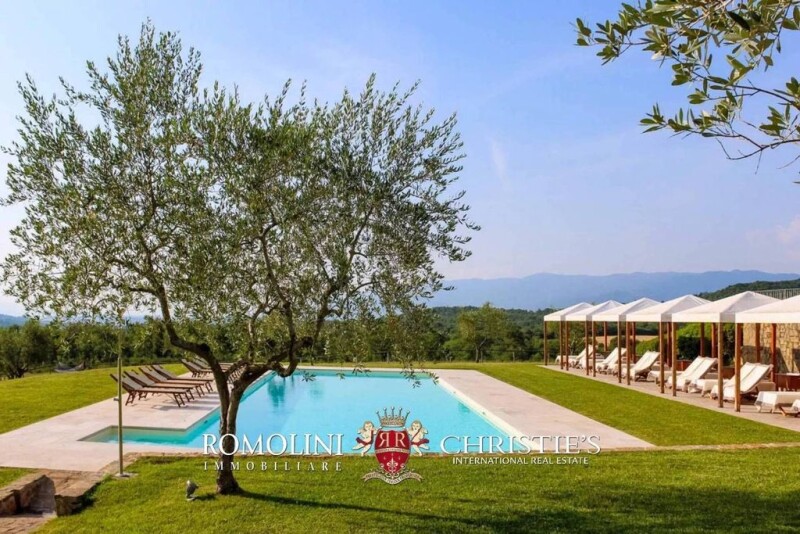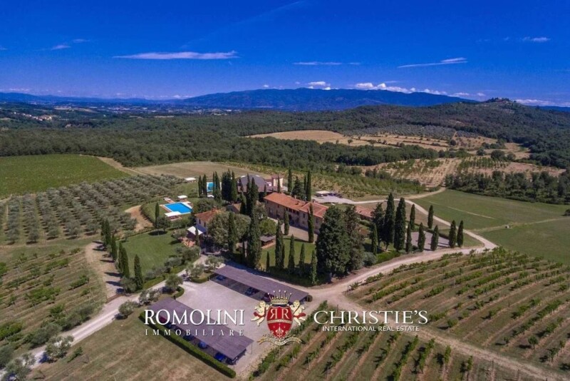 In panoramic location at the border of the Chianti area, in the province of Arezzo this 92.3 ha estate offers a beautiful Agriturismo with 30 bedrooms, an ample restaurant, two salt-water swimming pool and 11.3 ha of vineyards. The hamlet, heart of the property, dates back to the 17th century and the buildings have been carefully renovated to preserve their unique features. The hamlet is located in an extremely convenient location, not far from a town offering all the necessary services (5km; 10’), and allows easily moving throughout Tuscany, visiting its most beautiful and renowned towns: Montevarchi (14km; 25’), Arezzo (35km; 45’), Castiglion Fiorentino (40km; 50’), the medieval Siena (41km; 50’), Greve in Chianti (49km; 1h), the beautiful Renaissant city of Florence (61km; 1h), Montepulciano (62km; 1h), the hometown of the Brunello di Montalcino DOCG (73km; 1h 15’) and San Gimignano with its imposing towers (88km; 1h 25’). On the other hand, if you are a shopping and/or relax lover, in 30 minutes-or-so you can easily reach both the luxury outlet The Mall (40km; 45’) and the thermal centers of Rapolano (28km; 35’). The most convenient airports to reach the property are Firenze Peretola (78km; 1h 5’), Perugia Sant’Egidio (115km; 1h 30’), Pisa Galilei (139km; 1h 45’), Bologna Marconi (160km; 2h), Roma Ciampino (244km; 2h 35’), Roma Fiumicino (258km; 2h 40’), Milano Linate (356km; 3h 45’) and Milano Malpensa (410km; 4h 20’). DESCRIPTION OF THE BUILDINGS The building A (605 sqm – 6,510 sqft, 14 bedrooms and 13 bathrooms) is an ample farmhouse housing seven apartments on two floors: - Apartment N°1 (90 sqm – 968 sqft, ground floor): living room, kitchen with dining area, two bedrooms and two bathrooms; - Apartment N°2 (55 sqm – 592 sqft, ground floor): living room with dining area and kitchen, bedroom and bathroom; - Apartment N°3 (130 sqm – 1,399 sqft, ground floor): living room with kitchen, sitting room, four bedrooms and three bathrooms; - Apartment N°4 (90 sqm – 968 sqft, first floor): living room, kitchen with dining area, two bedrooms with en-suite bathroom; - Apartment N°5 (55 sqm – 592 sqft, first floor): living room with dining area and kitchen, bedroom and bathroom; - Apartment N°6 (130 sqm – 1,399 sqft, first floor): living room, dining room with kitchen, four bedrooms and three bathrooms; - Apartment N°7 (55 sqm – 592 sqft, first floor): living room with dining area and kitchen, bedroom and bathroom. The Building B (200 sqm – 2,152 sqft, 6 bedrooms and 4 bathrooms) is a farmhouse split into two apartments, one on each floor: - Apartment N°8 (100 sqm – 1,076 sqft, ground floor): living room with dining area, kitchen, three bedrooms and two bathrooms; - Apartment N°9 (100 sqm – 1,076 sqft, first floor): living room, dining room with kitchen, three bedrooms and two bathrooms. The Building C (190 sqm – 2,044 sqft, 5 bedrooms and 4 bathrooms) is a farmhouse too, divided into two apartments: - Apartment N°10 (90 sqm – 968 sqft, ground floor): living room, kitchen with dining room, two bedrooms and two bathrooms; - Apartment N°11 (100 sqm – 1,076 sqft, first floor): living room with dining area, kitchen, three bedrooms and two bathrooms. The villa (120 sqm – 1,291 sqft, 4 bedrooms and 2 bathrooms) is made up of an ample living room with dining area, kitchen with island, four bedrooms and two bathrooms. A multipurpose building (415 sqm – 4,465 sqft) houses a restaurant (fitted with a nice wine bar) with kitchen and bathrooms, a beautifully restored hall and the reception. STATE AND FINISHES The original core of the hamlet dates back to the 17th century and was built along an important road connecting Florence with Arezzo and Siena. Buildings are made out of stone and masonry, in typical Tuscan rustic style, and have been carefully and masterfully restored so not to lose their fundamental features. In the apartments, one can find wooden beams, terracotta floors and carved-stone jambs and frames. The property is equipped with a dedicated Internet Wi-Fi connection reaching all the rooms. EXTERIORS The property in its entirety covers a surface of approximately 92.3 hectares, split among vineyards (11.3 ha), olive grove (1.1 ha), arable land (12.8 ha) and woodland (67.1 ha). The complex is equipped with two beautiful salt-water swimming pool, respectively 17 × 8 m and 20 × 7 m. Right next to the pools, each apartment boasts a private gazebo with deck chair and solarium. Not far from the building is located an ample parking area with canopies for car sheltering. DETAILS ON WINE PRODUCTION - Vineyard surface: 11.3 hectares (27.9 acres) - Varieties: Sangiovese, Merlot, Colorino, Trebbiano, Malvasia - Year of planting: 1968, 1972, 2000 - Altitude: ~290 m asl - Yearly production: up to 50 tons of grapes (approximately 50,000 bottles of IGT wine) DETAILS ON OIL PRODUCTION - Surface: 1.1 hectares (350 trees) - Varieties: Moraiolo, Leccino, Pendolino - Altitude and exposure: ~290 m asl (Southwest) - Terrain composition: calcareous, clayish - Yearly production: ~4 tons of olives (with an estimated yield between 12% and 15%, this means approximately 500 kg of oil) CLOSEST CITIES AND TOWNS Bucine (5km; 10’), Montevarchi (14km; 25’), Arezzo (35km; 45’), Castiglion Fiorentino (40km; 50’), Siena (41km; 50’), Greve in Chianti (49km; 1h), Florence (61km; 1h), Montepulciano (62km; 1h), Montalcino (73km; 1h 15’), San Gimignano (88km; 1h 25’) CLOSEST AIRPORTS Firenze A. Vespucci (78km; 1h 5’), Perugia San Francesco (115km; 1h 30’), Pisa G. Galilei (139km; 1h 45’), Bologna G. Marconi (160km; 2h), Roma Ciampino (244km; 2h 35’), Roma Fiumicino (258km; 2h 40’), Milano Linate (356km; 3h 45’), Milano Malpensa (410km; 4h 20’).