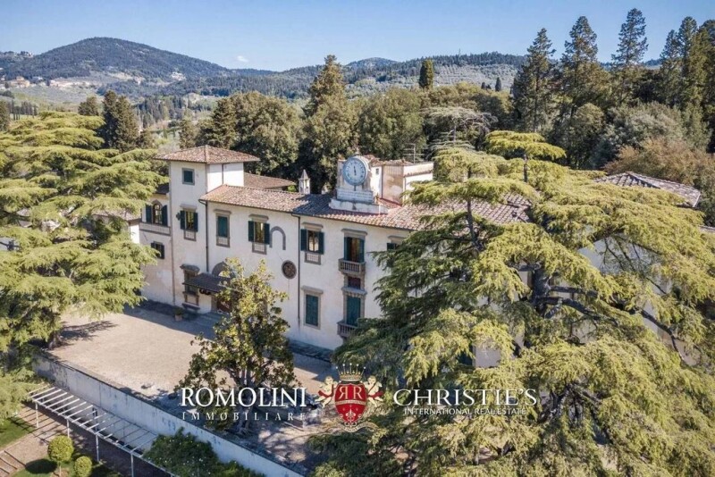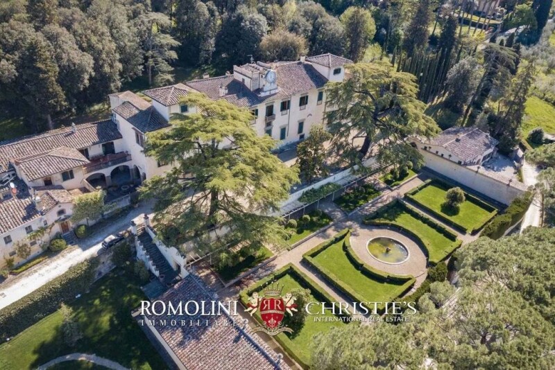 Just outside the historic center of Florence, in a very panoramic position, magnificent historic villa that belonged in the past to the noble Strozzi family. The property (2,790 sqm) is made up of four finely restored buildings which currently feature 25 bedrooms (with the possibility of creating more). The exteriors (12.0 ha) include a beautiful Italian garden and a panoramic swimming pool. The property is an excellent investment opportunity for a private villa, a luxury boutique hotel or an exclusive company headquarters. Services are all available nearby (less than 2 km) and the historic center of Florence can be reached in less than twenty minutes. From the villa, in less than two hours, one can reach some of the most notable cities of Tuscany (Fiesole, Monteriggioni, Siena, Pisa, Montepulciano, Montalcino, Pienza, Cortona…). The closest airport is the one in Florence (12km; 20’) but the terminals of Pisa, Bologna and Rome are equally convenient. DESCRIPTION OF THE BUILDINGS The manorial villa (1,800 sqm – 19,368 sqft) is the typical Florentine villa and features on the ground floor several reception halls, kitchens and bathrooms, while on the first floor there is a series of rooms and halls which could easily be converted into beautiful suites for the guests. The former coachman’s quarter (270 sqm – 2,905 sqft, 4 bedrooms and 4 bathrooms) is located on the first floor in a wing of the villa and is made up of a living room, a kitchen, a dining room, a laundry and four bedrooms with en-suite bathroom. A paved terrace (70 sqm – 753 sqft) completes the unit which also boasts three private car spots. The lemon house (400 sqm – 4,304 sqft, 4 bedrooms and 5 bathrooms) is laid on a single floor and is made up of a living room, a TV room, bathroom, kitchen with pantry, four bedrooms with en-suite bathroom and a laundry. Outside, the building features a private garden (750 sqm – 8,070 sqft) and a private parking lot for four cars. The farmer’s house (320 sqm – 3,443 sqft, 3 bedrooms and 4 bathrooms) is located in a slightly defiladed position. The living area (on the ground floor) is made up of kitchen, dining room, TV room, sitting room with porch, guest bathroom and laundry. The upper floor accommodates a sitting room and three bedrooms with en-suite bathroom and wardrobe. HISTORY, STATE AND FINISHES The villa, in its original form, dates back to the 14th century and was built for the Florentine merchant Vanni Buonaccorsi. Having been in touch with the architect Neri di Fioravante during one of its rare public tasks, it is highly plausible that Buonaccorsi tasked the architect to design and build his private villa on the hills of Florence. What’s known for sure is that in 1379 the villa was already registered as a possession of the renowned Strozzi family. They then owned the villa for over six centuries and in the second half of the 16th century the building took its current look. The villa was then abandoned in 1871 when the last member of the Strozzi family died and it was not inhabited until 2001 when it was ultimately restored by the current owners. Outside, the villa kept its original look almost untouched. The second tower was added to the façade in the 16th century to make it symmetrical, while the clockwork is a much later addition (19th century) together with the plaque quoting (in latin) a few verses from Clemente Bondi’s poem L’Orologio: De tot quae rapidae labuntur millibus una saltem una heu! Felix prodeat hora mihi. Even inside, the villa maintains its original charm. The huge reception halls have all been restored to preserve the beautiful frescoes on the walls, the coffered ceilings and the stone fireplaces that warmed the rooms in the past. The monumental staircase connecting the two floors is a beautiful masterwork with stuccos and golden leaves. On the upper floor there are many rooms paved with parquet and brightened by beautiful colored windows decorated in a style that closely resembles the early-20th-century Liberty style. From these upper rooms one can enjoy a wonderful view over the city of Florence and the Brunelleschi’s dome is well visible towering above the rooftops. EXTERIORS The estate surrounding the villa covers a surface of roughly 12.0 hectares (29.6 acres). A characteristic tree-lined avenue leads to the complex and ends up just outside the stunning Italian garden right in front of the villa. Behind the buildings, in a retired and panoramic position, there is a 12 × 6 m swimming pool surrounded by a garden which also doubles as a solarium. USE AND POTENTIAL USES The property, given its ample size and beautiful finishes, is suited for many different purposes. Its use as a private luxury villa is always possible, especially if one is looking for a property with a notable history and linked to one of the most powerful Florentine families. The possibility of creating many bedrooms in the villa, together with those already present in the annexes, is an excellent opportunity even for those looking for a luxury property to use in an exclusive accommodation business. In that case, the beautiful Italian garden and the generous reception halls could also be the perfect background for events, ceremonies and meetings. Another idea could be using the villa as an exclusive headquarters for an equally exclusive company, which would then be able to showcase a real piece of Florence’s history. What’s more, as for the accommodation business, the ample spaces available (both inside and outside) are ideal for company briefings and meeting with important clients. CLOSEST CITIES AND TOWN†S Town with services (2km; 5’), Fiesole (8km; 15’), Florence (13km; 20’), Colle di Val d’Elsa (53km; 45’), Monteriggioni (61km; 55’), Siena (77km; 1h), Volterra (80km; 1h 15’), Pisa (97km; 1h 20’), Montepulciano (108km; 1h 20’), Montalcino (115km; 1h 40’), Pienza (115km; 1h 30’), Cortona (116km; 1h 30’) CLOSEST AIRPORTS Firenze Vespu
