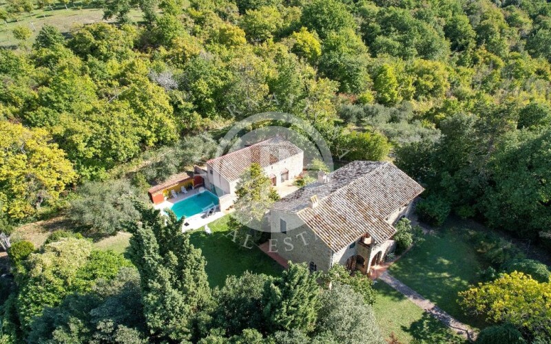 In the evocative setting of Umbria, stands a refined residence: a stone villa on two levels, expertly renovated without betraying its origins. With terracotta floors and wooden beamed ceilings, this residence offers a unique experience, with its annex and a splendid swimming pool, completely surrounded by greenery, a short distance from Perugia. The interiors of this charming villa tell the story of Umbria. On the ground floor, the kitchen with dining area, a service bathroom, the living room with the majestic stone fireplace and the dining room invite you to convivial and relaxing moments. Going up to the first floor, a spacious hallway, two double bedrooms with wardrobe space and en-suite bathroom each and a small bedroom with en-suite bathroom offer comfort and intimacy. A timeless elegance envelops every corner of this home. The annex, with a brick facade and parquet floors, extends over two levels. On the ground floor, a large living room opens onto the splendid swimming pool, while on the first floor a kitchen with dining room and two bedrooms with two en-suite bathrooms guarantee the independence and privacy of guests. Service rooms for the swimming pool and a water collection tank add practicality and functionality. The park of over 11,000 m2 offers total privacy and an enchanting green oasis. The driveway access completes the harmony of this unique environment. This prestigious residence combines ancient charm with modern conveniences. The original terracotta floors, the ceilings with wooden beams and the stone fireplace give a touch of authenticity. The annex, with parquet floors and brick details, expresses modernity and comfort. The swimming pool is the perfect haven for relaxation. In this unique setting, privacy is guaranteed, making this villa a place of refined well-being. In the immediate vicinity of Perugia, the heart of Umbria, this luxury villa offers a perfect combination of the tranquility of the countryside and proximity to one of the most fascinating cities in Italy. An easy driveway allows you to immerse yourself in the lush nature of a park of over 11,000 m2, creating an atmosphere of total exclusivity and refinement. Perugia is a city located in the Umbria region, in central Italy. It has a long history dating back to the Etruscan era. The city is famous for its medieval architecture, cobblestone alleys, and charming squares. The historic center of Perugia is surrounded by well-preserved medieval walls that offer breathtaking views of the surrounding countryside. The city is characterized by historical buildings, churches, museums, and picturesque fountains. Among the most notable attractions are the Cathedral of San Lorenzo, the Fontana Maggiore in Piazza IV Novembre, and the Palazzo dei Priori, which houses the National Gallery of Umbria with significant works of art. Perugia is also known for being the seat of the University of Perugia, founded in 1308. The city is famous for its annual art and music festival called Umbria Jazz, attracting artists and enthusiasts from around the world. Additionally, Perugia is renowned for its chocolate production and is home to the famous Perugina chocolate house, known for the iconic Bacio Perugina. Overall, Perugia is a captivating destination that combines history, culture, art, and a vibrant university atmosphere. Perugia town center – 10 km Umbria Airport – 20 km Trasimeno Lake – 20 km Florence – 150 km Rome – 180 km.