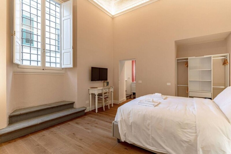 LUNGARNO DELLE GRAZIE, behind PIAZZA DELLA SIGNORIA and a few meters from PIAZZA SANTA CROCE, inside an ancient and prestigious seventeenth-century building protected by the FINE ARTS and called "Palazzo Bardi Tempi", we offer a luxurious and spacious SIX ROOMS (approximately 167m2) completely renovated and furnished, with a high rental yield, guaranteed immediately. The apartment has TWO ENTRANCES, one directly from VIA DEI BENCI and the other from VIA MOZZA and consists of a LIVING ROOM, FRESCOED LIVING ROOM/KITCHEN, THREE BEDROOMS and THREE BATHROOMS. Ceiling height 4.5M, period frescoes completely restored, furnished with taste and attention to detail and exclusive location are the strong points of this rare property. The apartment is located in the heart of the historic center of Florence, the area is full of restaurants, shops and monuments of historical and cultural interest, which makes it ideal for tourism purposes. The apartment is sold fully furnished as per photo shoot ready to be immediately rented or inhabited.