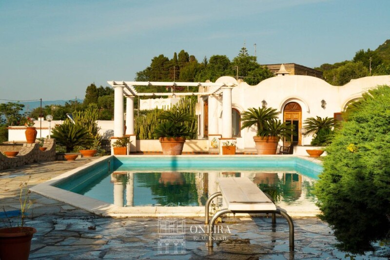 Stunning Panoramic Villa With Pool And Terraces Located in picturesque Anacapri, along the road leading to the famous Grotta Azzurra, this impressive villa offers breathtaking views over the Gulf of Naples and the enchanting islands of Ischia and Procida. With its 315 square metres on two levels, it combines the elegance of Mediterranean design with the potential to be modernised, creating an exclusive and comfortable living environment. Thanks to its location, the villa allows one to enjoy extraordinary sunsets, with the sun setting directly in front of the property, creating a magical atmosphere. Inside, the first level features a large living area, three bedrooms, two bathrooms and a medium-sized terrace accessible from one of the bedrooms. This level includes direct access to the panoramic terraced areas, where the spectacular swimming pool is located. The level below welcomes us with a further living area with elegant blue flooring, a well-equipped kitchen, two further bedrooms and two bathrooms. The two levels are connected internally by an elegant staircase. Externally, the villa boasts approximately 3,000 square metres of outdoor space, perfectly arranged for outdoor living. The panoramic terrace, oriented towards the sea, is the jewel in the crown of the property, with a spectacular swimming pool that seems to merge with the sea horizon, allowing one to enjoy the surrounding panorama and the tranquillity of the place. Both levels of this imposing property enjoy convenient and functional access to the numerous outdoor areas, which add a touch of refinement to the villa. The privileged location, the breathtaking views, the spacious indoor and outdoor areas and the generously sized swimming pool create a perfect setting for those who desire a luxurious retreat. Here, you will experience unforgettable moments, enjoying the peace and natural beauty that only Anacapri can offer. Whether organising alfresco dinners with friends and family, relaxing by the poolside admiring the sunset, or simply enjoying the tranquillity of your own private terrace, this villa offers endless possibilities for creating your own personal piece of paradise. An element that adds further value to this villa is the possibility of being able to reach the property by car.
