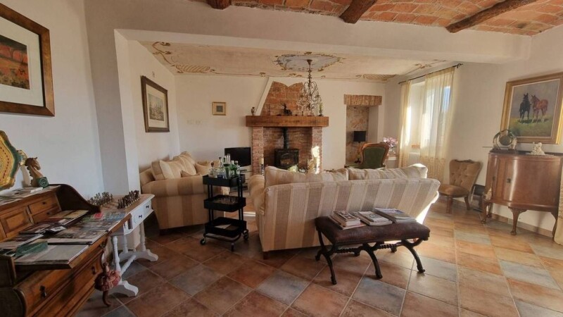 In a quiet location, surrounded by vineyards, a magnificent, recently renovated, large property is for sale. The property has a pool and a well-kept garden and is located near a small village with basic amenities and facilities, and is only 10 km from Nizza Monferrato. The house is spread over two floors: on the ground floor there is a very spacious living area with open kitchen and dining room, a cozy lounge, a large living room with original ceilings, some of which are frescoed. To the rear is a spectacular cellar with exposed brick and beams. On this floor there is also the laundry /toilet room, a storage room, a hallway and a beautiful porch with a summer kitchen. There are technical rooms, porticoes and storage rooms for agricultural equipment. On the upper floor there are 6 bedrooms with en-suite bathrooms, two of which are very spacious, and with panoramic terraces. Modern installations include solar panels for hot water and high quality fittings. The property is sold almost fully furnished and is suitable - as it is now - for a large family, for a two-family use or even for a tourist activity A must see!.