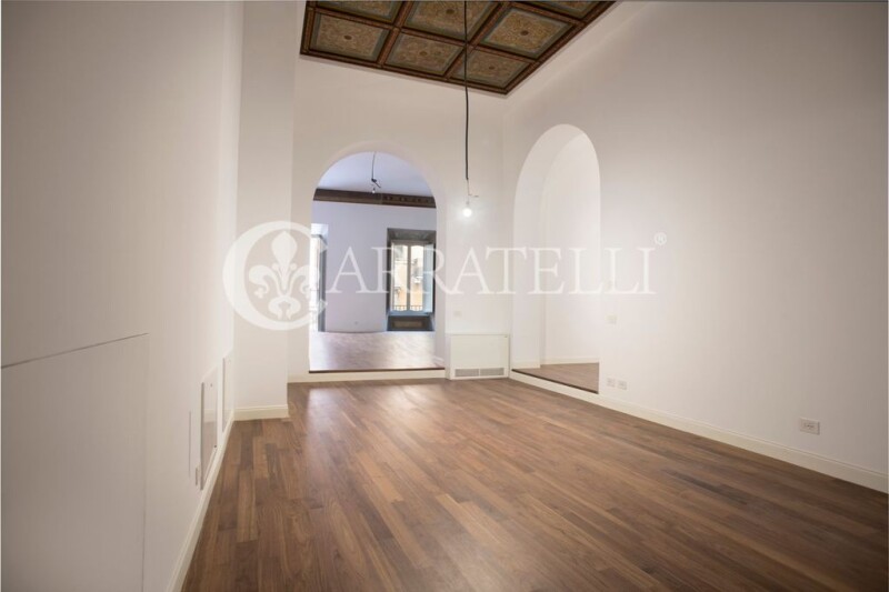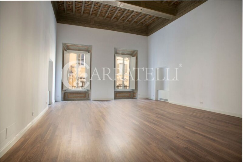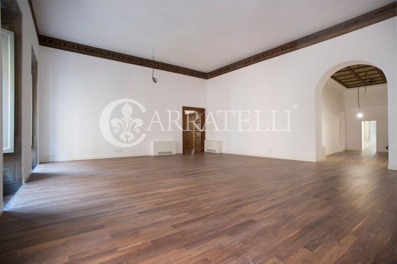 A wonderful eighteenth-century building of an ancient noble family, in the heart of Rome, on Via del Gambero, between Piazza Navona, the Trevi Fountain and the Pantheon, is coming back to life. Signed by the architectural firms “Tamburini” and dL Engineering” of Rome (for the restoration part) and ‘Scandurra’ of Milan (for the interior design part), the palace is in its final stage of restoration, which has made it able to offer all the comforts of today while respecting the original materials and preserving the charm of the period. The imposing entrance leads into modern rooms, studied in detail, in line with the needs of daily life. Three staircases, one of which is monumental, with related state-of-the-art elevators, serve the various floors for a total of 28 apartments all unique and different from each other, four of which have large terraces. Each apartment has been given a distinctive name, taking inspiration from the great Italian masters: painters, sculptors, poets and composers. Stairway A, the Monumental stairway, serves the apartments facing Via del Corso in the pedestrian area. The apartment, on the second floor of the Palace, is a Piano Nobile residence with high coffered ceilings in the salons. The highly representative entrance hall leads to the salons, three rooms that connect to each other, one of which has an 18th-century balcony and another with a representative fireplace. The salons have tall windows overlooking Via del Corso, giving the rooms sumptuous perspectives. Also from the entrance hall, there is access to the service area, with a large kitchen and area reserved for housekeeping, laundry, ironing room, small inner courtyard, service room with bathroom, as well as a guest bathroom. A corridor well separates the living area from the sleeping area, which consists of three double bedrooms, each served by its own bathroom, including a master bedroom with a room with large spaces. This ancient building thus becomes a period residence capable of sustaining the rhythms of daily life thanks to the most modern services, such as: concierge, video surveillance at the entrance for access to the ground floor and common areas, radiant floor heating, a/c, latest generation home automation, dedicated lobby to receive guests. A cellar on the S1 floor completes the property.