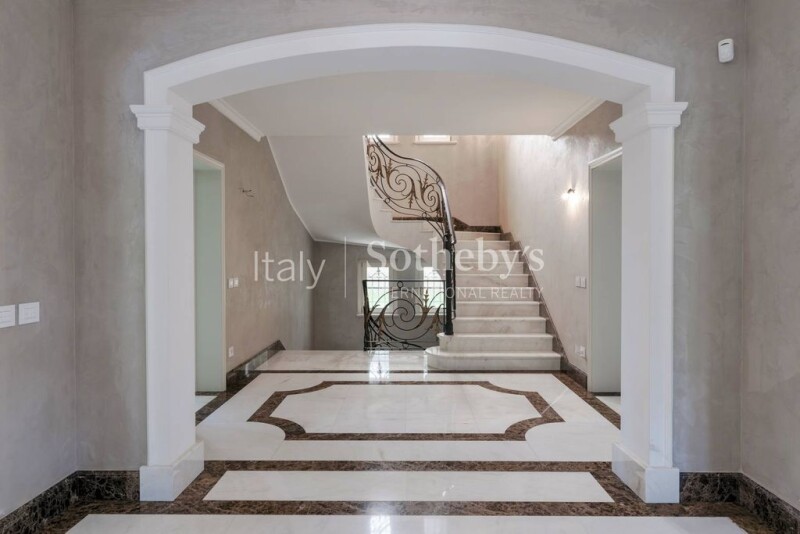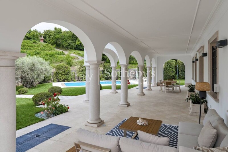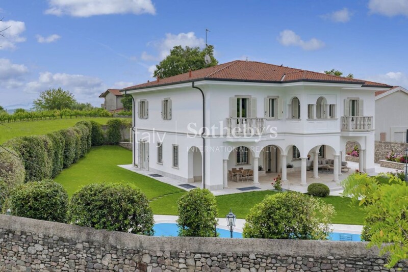 This elegant, recently built villa is located on a plot of 1,450 sqm (15.607 sq ft) in the renowned area of Franciacorta. The building, distributed on three levels, offers refined and spacious rooms. On the ground floor, a furnished portico leads to a dining room connected to the kitchen, a living area, a study and a guest bathroom. The upper floor is reached by a majestic marble staircase with a wrought-iron balustrade, leading to four double bedrooms, two with en-suite bathrooms, a dressing room, an additional bathroom and a storage room. The basement, naturally lit thanks to a perimeter cavity, houses a bathroom, two rooms, a laundry room and a large technical room. The directly accessible garage can accommodate up to ten cars with ample room to manoeuvre. The well-kept garden includes a swimming pool with an overflow system. The villa is equipped with advanced technological systems: underfloor heating and cooling, solar and photovoltaic panels, volumetric and perimeter burglar alarm system, and home automation systems. Fine finishes, with marble in the main living areas, parquet flooring in the bedrooms and triple-glazed windows and doors, complete this class A property. Access to the property is via driveway and pedestrian gates or directly from the municipal road. Strategically located, the villa is close to Lake Iseo and only 30 minutes from Brescia.