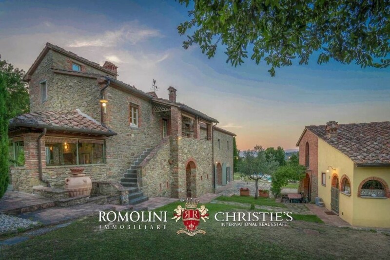 In the province of Arezzo, really close to a small town providing all the services, this wonderful farmhouse with its 610 sqm of surface and 5 bedrooms is perfect for whoever is looking for a private residence or a starting point for an accommodation business with good privacy. Further enriching the property are an 11 x 5 m swimming pool, a well-maintained garden and a small olive grove. Easily accessed and set in a not-too-isolated location, the farmhouse grants a quick access to the nearby village (1km; 5’) and all the most renowned towns of Tuscany (Arezzo, Cortona, Montepulciano, Pienza, Siena, Florence...). DESCRIPTION OF THE BUILDINGS The main farmhouse (450 sqm – 4,842 sqft) is laid out onto two floors: on the ground floor we find a habitable kitchen, a laundry room, a dining room, a small bathroom, a sitting room, a studio and a cellar to stock wine and oil. Mounting to the first floor we find the night-zone made up of three double bedrooms (each with an en-suite bathroom, one with a whirlwind tub) and enriched by a panoramic terrace. The guesthouse (160 sqm – 1,722 sqft) is also split between two floors and is currently registered as a warehouse. One could evaluate the possibility of converting it into ad additional house (following approval by the authorities): on the ground floor one would find a kitchen, a living room, a small cellar and a bathroom (which could be turned into a laundry room); up on the first floor the night zone with two double bedrooms and a bathroom. A garage (48 sqm – 516 sqft) offers a useful shelter for up to 4 cars. STATE AND FINISHES The property has been finely restored and all the relevant traits of Tuscan countryside buildings have been attentively preserved: external stone and masonry walls of the main farmhouse have been fully restored and are now in excellent conditions and the masonry wall of the dependance are in good conditions too. Even on the inside we managed to preserve the rustic appearance of the building, without using modern materials and preserving the beautiful wooden beams. Floors are all tiled with high quality materials ranging from ancient terracotta, cleaned and repositioned, to a more modern terracotta and parquet of some rooms. Walls mainly plastered and painted with not-too-showy colors, but some stone sections are still visible, as well as brick-built arches linking the rooms in the day-zone. EXTERIORS Buildings are surrounded by one hectare of land, split between garden and olive grove. The property is fenced with stone walls and metal fences decorated by laurel trees, strawberry trees and sage bushes. The small olive grove grants a reasonable production of olives which can be used to obtain a small quantity of oil for private use. On the garden we can also find a beautiful 11 x 5 m swimming pool, entirely covered in travertine and pietra serena and equipped with a gazebo and a dressing room with shower. Still on the garden there is a nice gazebo equipped with kitchen, wood oven and BBQ which makes it particularly viable for al fresco dining in company. A small wooden shed (30 sqm – 323 sqft) grants shelter for the tools used to take care of the garden and the olive grove. USE AND POTENTIAL USES The property, with its nice size and its high quality finishes, it is perfect as a luxury private residence in a quiet and undisturbed location, granting a high level of privacy. The presence of five bedrooms opens up the possibility of starting a small B&B-like business, thanks also to the pool and the gym, two bonus very much appreciated by tourists and vacationers. CLOSEST CITIES AND TOWNS Town with services (1km; 5’), Arezzo (5km; 15’), Castiglion Fiorentino (18km; 25’), Cortona (30km; 40’), Montepulciano (52km; 50’), Pienza (58km; 1h), Siena (72km; 1h 10’), Montalcino (73km; 1h 20’), Florence (78km; 1h 15’) CLOSEST AIRPORTS Perugia San Francesco (90km; 1h 10’), Firenze A. Vespucci (96km; 1h 5’), Pisa G. Galilei (158km; 1h 50’), Bologna G. Marconi (179km; 2h), Roma Ciampino (230km; 2h 25’), Roma Fiumicino (245km; 2h 25’).