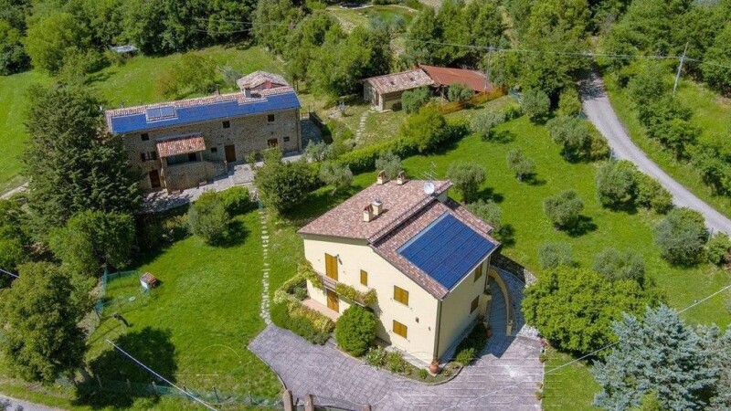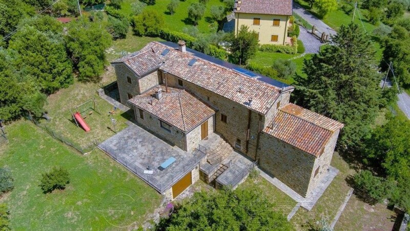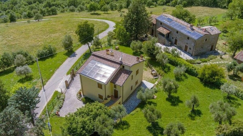 A short distance from the border with Tuscany, we offer for sale a real estate complex consisting of an old farmhouse of approximately 290 sq. m. walkable, completely renovated, with a garage of 54 sq. m., as is also renovated the adjacent villa of 180 sq. m. consisting of two independent apartments, outbuilding and land of approximately 10 hectares where there is an ecological swimming pool and a private lake. The farmhouse consists of 2 separate housing units, however also joinable to form a single large apartment or even to create more housing units or rooms to rent. On the ground floor there is the smaller apartment of approximately 90 sq. m. consisting of a large kitchen and living room of 26 sq. m. each, bedroom, study and bathroom. The other larger apartment instead rises on several levels with a tavern in the basement, 2 double bedrooms with 2 bathrooms on the ground floor, while on the first floor there is a hall and a living room both of 30 sq. m., as well as 2 bedrooms and an additional bathroom. This farmhouse is completed by a large garage of 54 square meters. Instead, the 2 apartments of the villa are both composed of a living room, eat-in kitchen, 2 double bedrooms and 2 bathrooms. Not far from the farmhouse there is a small annex where an additional bedroom with bathroom has been created. Externally, the property has beautiful terraces from where you have a beautiful view of the surrounding countryside. Not far from the farmhouse we also have a beautiful biological swimming lake, surrounded by water lilies and other aquatic plants and a lush garden with many plants such as olive trees, junipers, rose bushes and lavender. The property is equipped with a 15 Kw photovoltaic system, as well as a heating system and hot water production with a wood and pellet boiler, LPG boiler and solar thermal panels. The entire property is suitable both for being inhabited as a main residence and for being inserted in the tourist channels, these areas being highly sought after by both Italian and foreign customers. Possibility of fractional sale.--a94e1f6928f3a320e88d77b6aad8ea47!.