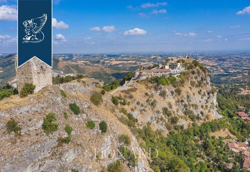 Placed on rough rocks that dominate the Marecchia Valley, this medieval castle for sale enjoys of a 360° view on its surroundings in Emilia Romagna. This 12th-century property was originally a church and then became a noble home. Ten years ago the castle underwent renovation works bringing to light its old splendour and becoming a relais. Its three levels host a large, modern restaurant and a hotel with 13 en-suite bedrooms equipped with air-conditioning system. The upper floor is occupied by a big living room offering a wonderful panoramic view. This estate measures 3000 sqm overall and is surrounded by 6 hectares of park and woods. The native structures of the fortress have partly fallen and now we find only a part of the fortress, the door with two towers, a cistern and part of the walls. A legend tells that near the Fortress Gianciotto Malatesta was slain in 1304. He, some years before, killed his wife Francesca and his brother, Paolo, the lovers celebrated by Dante. The actual renovation project foresees the recovery and the valorisation of this fortress, which is very important for the local history and could become home to a congress centre, a fitness centre and a luxury home. Ref: 0271.