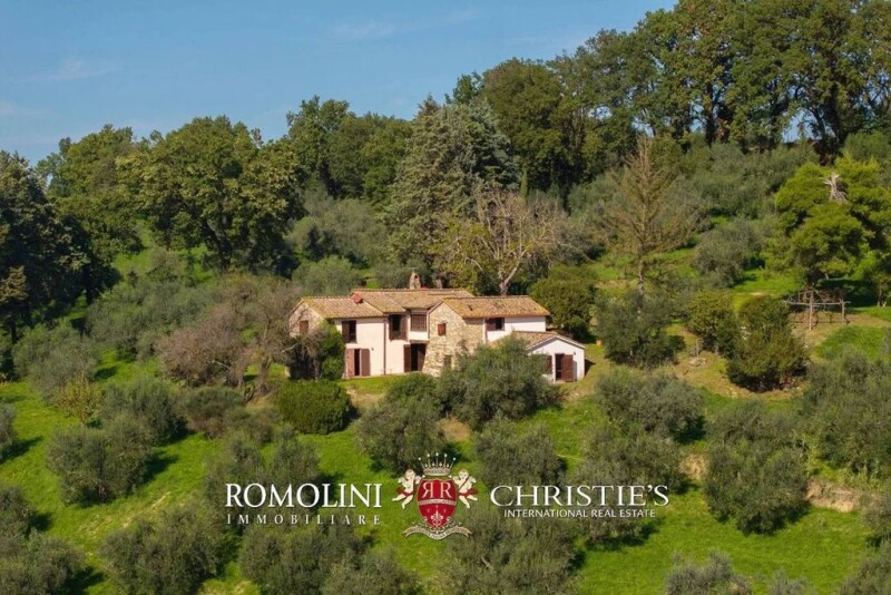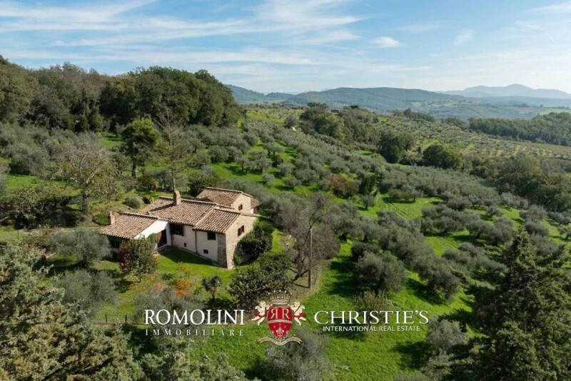 In a panoramic position in the hills of Amelia, with breathtaking views stretching to Mount Soratte, rustic house with land for sale. The property, in excellent condition, currently houses 4 bedrooms and is perfect both as a private residence and as a small vacation home to be included in the tourist accommodation circuit. The 4.2-ha land surrounding the building hosts a well-kept garden and a centuries-old olive grove. The property enjoys the proximity to Amelia, a historic village of extraordinary beauty, known for its perfectly preserved historic center. Amid medieval churches, Renaissance palaces, and traces of ancient pre-Roman streets, Amelia stands on a hill surrounded by holm oaks, olive groves, and the winding course of the Tiber River, protected by majestic thousand-year-old walls. Basic services are available in a small village nearby (1.7 km), while the historic center of Amelia is about 10’ drive away and has supermarkets, banks, post office and secondary services. An important detail, the junction of the E45 freeway is about 5 minutes’ drive away and makes it possible to reach Rome in just over an hour. DESCRIPTION OF THE BUILDING The cozy and well-structured house (266 sqm – 2,862 sqft) is on two levels and is structured around a 17th-century watchtower. Entrance is through a large porch with a striking peperino stone table and a large wood-burning oven, ideal for outdoor dining. From here you enter a bright living room with a stone fireplace, featuring views that open on two opposite sides. Adjacent to the living room is an eat-in masonry kitchen, complete with fireplace, tiled decorations and spacious countertops. The living room then leads to a bedroom with en-suite bathroom and private study (lit by a distinctive wood-paned window, which lends a touch of rustic elegance), connected in turn to a second bedroom with en-suite bathroom. On the lower floor, independently accessible from the outside, there is a spacious cellar (usable as a rustic hall), the technical room with attached service bathroom, and two bedrooms, one of which has an en-suite bathroom. Independent access to the two bedrooms is also ideal for accommodating guests who can then have their privacy. Much of the house is embellished with ceilings with original chestnut beams, which maintain the authentic charm of the structure. EXTERIOR The property is surrounded by 4.2 hectares (10.4 acres) of land, characterized by the presence of 550 carefully tended ancient olive trees. In addition, the land has areas perfect for the construction of a swimming pool that would harmoniously blend into the natural landscape. The building is surrounded by a large terraced garden full of ornamental plants and ancient trees and offers numerous green spaces ideal for relaxing moments or outdoor conviviality. CLOSEST CITIES AND TOWNS Town with services (1,7km; 5’), Amelia (6km; 10’), Narni (15km; 20’), Terni (25km; 25’), Spoleto (52km; 50’), Todi (56km; 45’), Rieti (59km; 50’), Orvieto (66km; 55’), Montefalco (67km; 1h), Civita di Bagnoregio (68km; 1h), Bolsena (73km; 1h 5’), Perugia (94km; 1h 10’), Rome (95km; 1h 15’), Assisi (96km; 1h 20’) CLOSEST AIRPORTS Perugia San Francesco (95km; 1h 10’), Roma Ciampino (108km; 1h 15’), Roma Fiumicino (123km; 1h 20’), Grosseto C. Baccarini (170km; 2h 15’), Ancona R. Sanzio (202km; 2h 30’), Pisa G. Galilei (294km; 2h 5’).