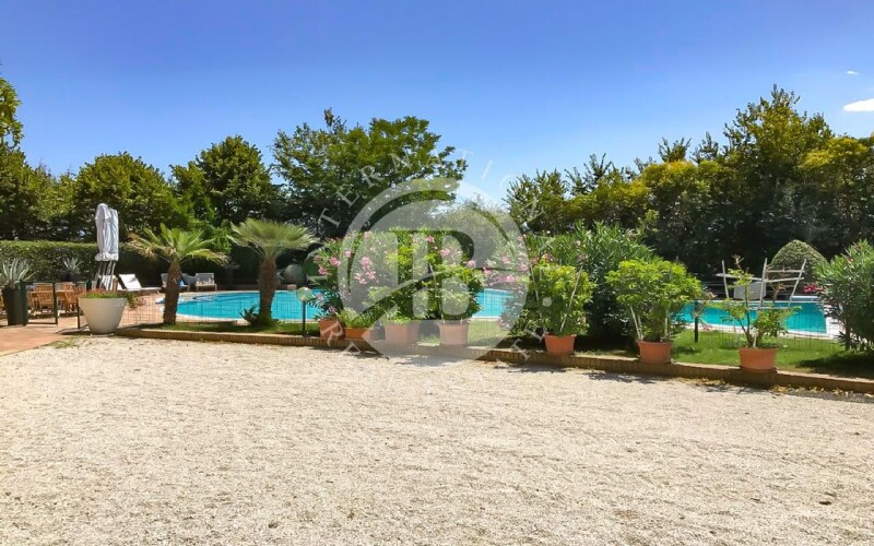 Located in a panoramic position just a few kilometers from the center of Pesaro, this charming completely renovated farmhouse offers a prestigious residence immersed in the tranquility of nature. The farmhouse, subject to a complete conservative renovation, retains its original architectural features. Spread over two above-ground levels, it offers spacious interiors, including an entrance hall, a representative living/dining room with a fireplace, a kitchen with dining area, five bedrooms, and three bathrooms. The interiors are characterized by an elegant combination of rustic charm and modern comfort. The exterior is enriched by a splendid fully equipped swimming pool and an exclusive outdoor space of approximately 3000 square meters, well-kept and planted, ideal for outdoor relaxation and entertainment. The surrounding land of approximately 3 hectares includes an olive grove and fruit trees, with three buildings used as storage and tool sheds. The property also includes a plot of land of approximately 30,000 square meters used as an olive grove and fruit trees, with various buildings and two wells. Its size and internal distribution make it suitable for a bed and breakfast activity, offering a unique investment opportunity. Located just 7/8 km from the city center, the property is easily accessible by car and mopeds. Its tranquil and verdant location, while remaining close to city services, makes it ideal for those seeking a luxurious and peaceful residence near Pesaro.
