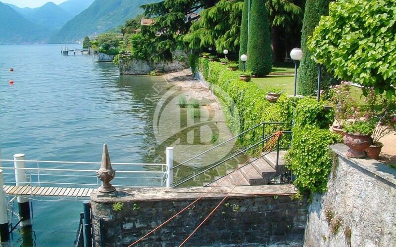 Enchanting lakefront property in Lake Como, situated directly on the water with a boat house. This stunning lakeside estate is a rare find in the prestigious area of Lake Como and includes a main villa spanning 750 sqm across three levels, a charming guest house of 160 sqm, and a caretaker's residence of 140 sqm. Surrounded by a lush 4,500 sqm lakeside park filled with mature trees and a historic Romanesque boundary wall with cypresses, this property offers privacy and tranquility. The main villa features an elevator and boasts a spacious open-plan living and dining area with a fireplace, two kitchens, storage rooms, and a laundry area on the ground floor. French doors lead to a large lakeside terrace perfect for outdoor dining and relaxing. A stone staircase leads to the lakeshore and a Mediterranean garden with a covered dining area. The first floor of the villa includes four bedrooms with lake views, a study, and four bathrooms. The top floor houses four additional bedrooms and two bathrooms. Both the main villa and guest house require renovation. Additional features include the potential to convert the existing marble fountain into a heated swimming pool overlooking the lake, a private boathouse, and buoys for water access. Lake Como, located in Lombardy, is one of the most exclusive and fascinating destinations in Italy. Surrounded by majestic mountains and enchanting villages, it offers breathtaking views that have captivated artists, celebrities and travelers from all over the world.