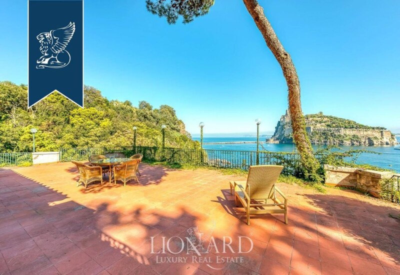 This wonderful villa is for sale near the Cartaromana beach and the Sant'Anna Rocks, in a unique position with a panoramic view of Ischia's sea and the Aragonese Castle. This exclusive property enjoys private access to the sea and is immersed into its surrounding nature, thus being perfect for spending the unforgettable moments of your beach holidays. The outdoor spaces, measuring 1,300 sqm overall, are distributed between the park and some large panoramic terraces, from which to enjoy breathtaking views of the sea and the Aragonese Castle. The villa is very bright thanks to its big windows overlooking the sea. In its 350 square meters, it houses a large reception room with a fireplace, a living area, a dining room, a kitchen, five bedrooms and five bathrooms. This property, currently to be restored, is located very close to the center of Ischia, and so it is ideal for those who want to have all the main services at hand, without sacrificing the privacy and tranquility of their own home. Ref: 8300.